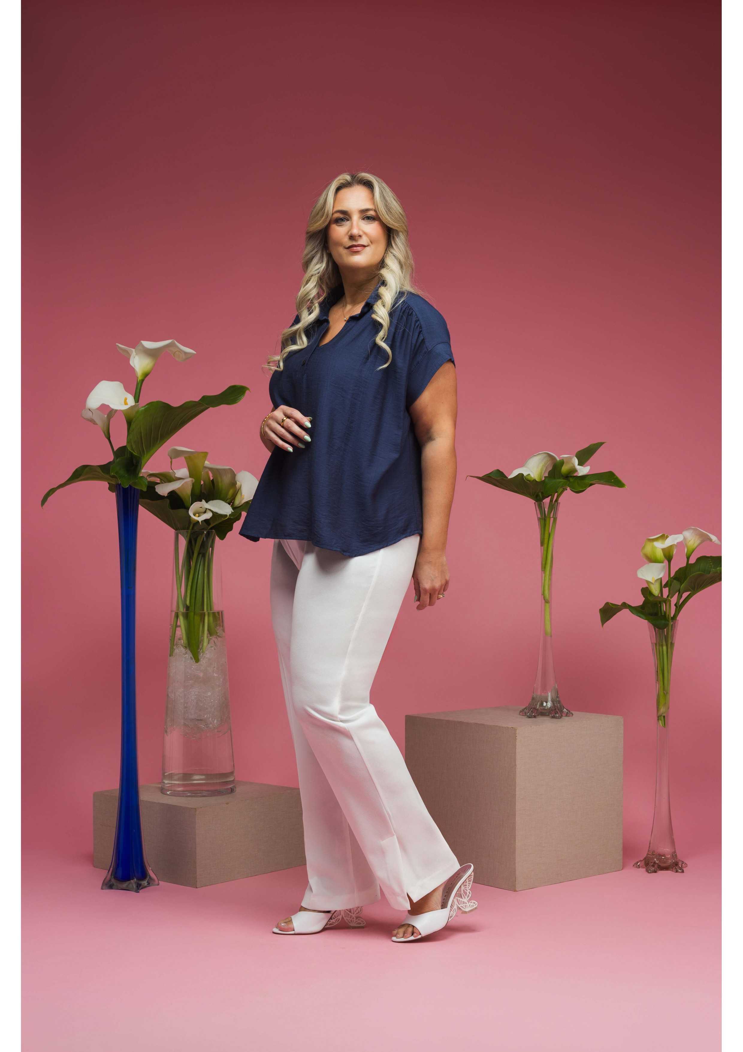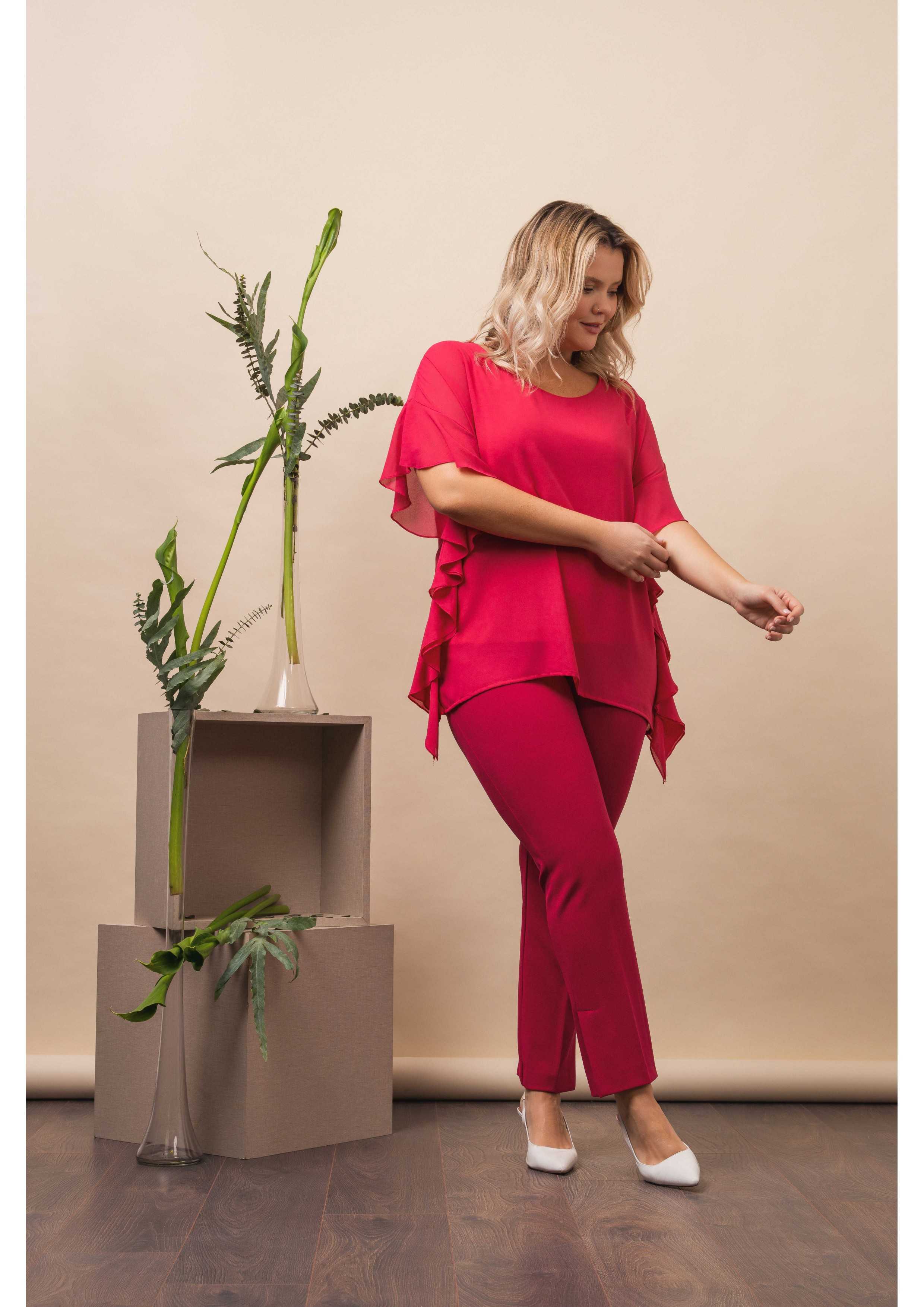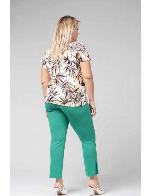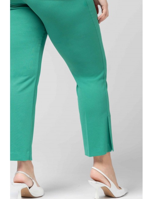 Plain crepe knitted pants with elastic at the waist and slits on the sides. Collection: Spring Summer Available in Plus Sizes Own design and manufacturing product. We are a clothing manufacturing brand with over 50 years of experience Model 1: Height 1.80m and is wearing size G Model 2: Height 1.70m and is wearing size 2XL Composition: 95% Polyester 5% Elastane