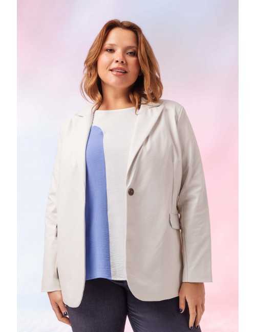 Smooth faux leather blazer, long sleeves, folded at the front, fastens with 1 button. Functional pockets, lined piece. Collection: Autumn Winter Available in Plus Sizes Own design and manufacturing. We are a clothing manufacturing brand with over 50 years of experience Model: Height 1.70m wearing size 2XL, in beige, black, and white. Model: Height 1.67m wearing size G, in camel color. Composition: 100% Polyester