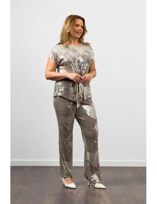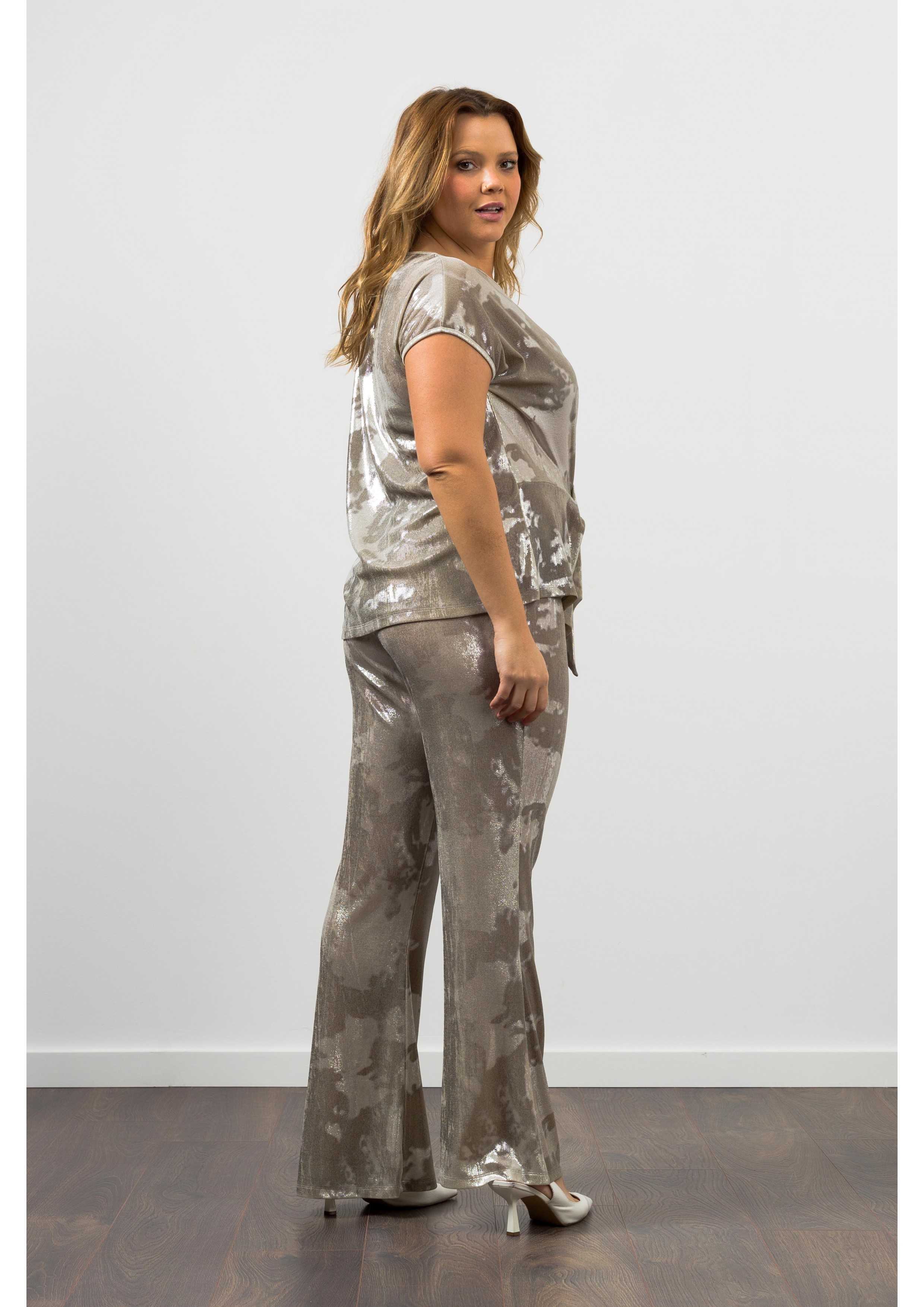 Shiny knit pants with an elastic waistband. Flared model | Collection: Spring Summer | Model: Height 1.70m and is wearing size 2XL