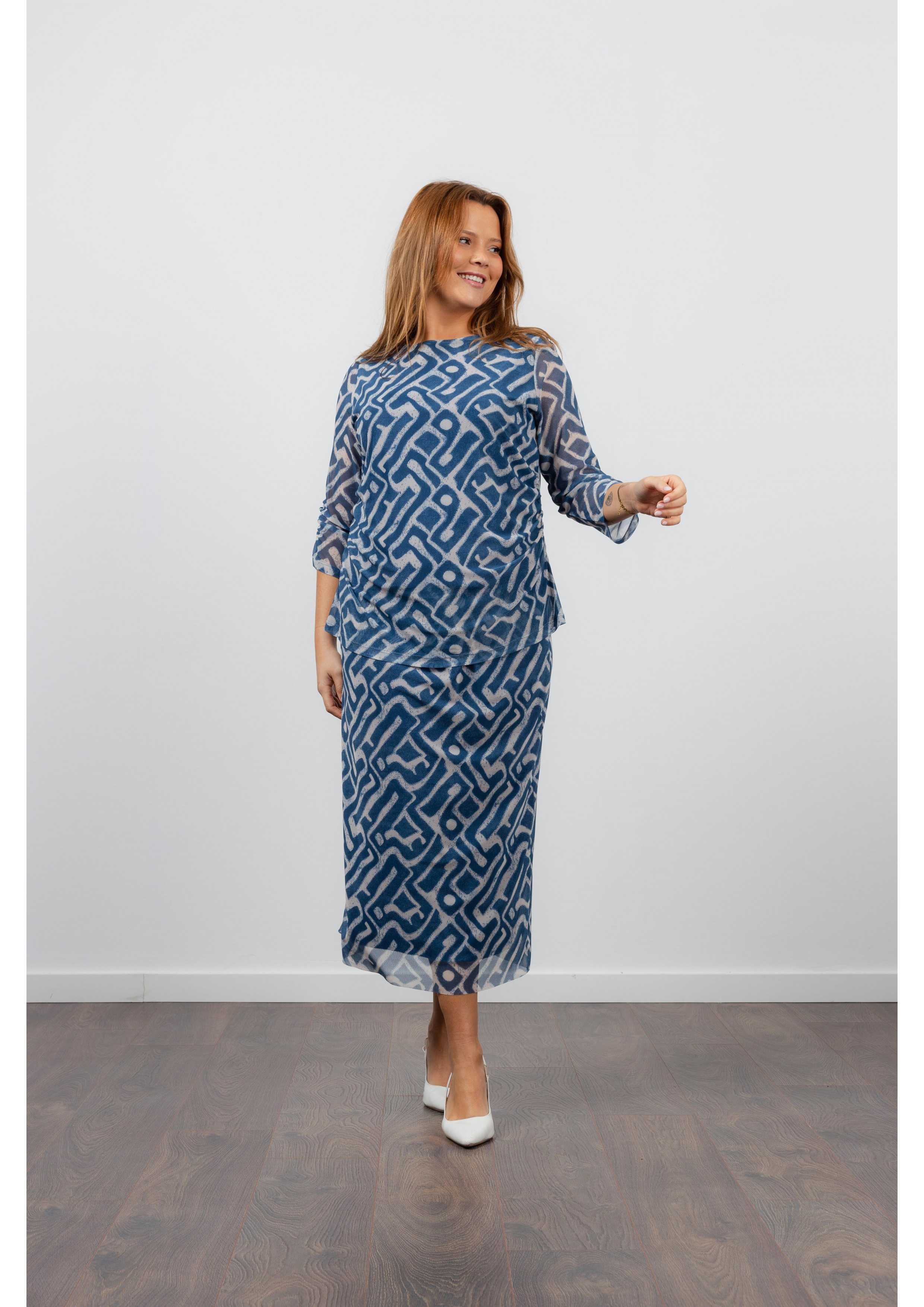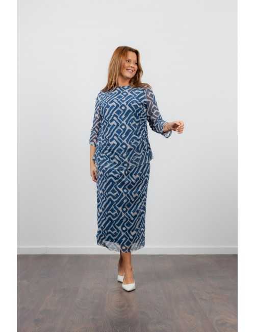 Set composed of a skirt and tunic in printed resilient mesh with lining. Boat neck | Collection: Spring Summer | Model: Height 1.70m and is wearing size 2XL