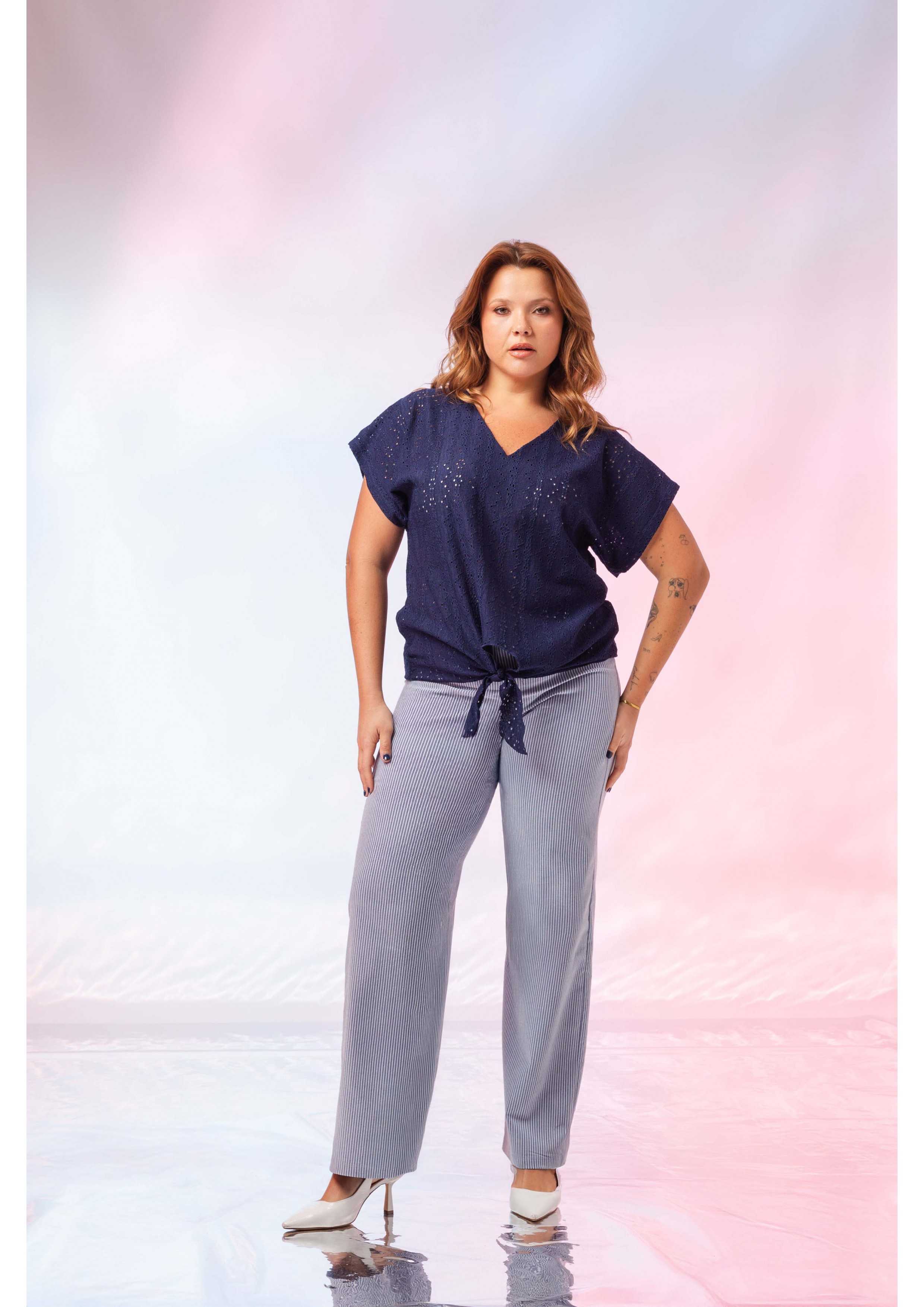 Vertical stripe fabric pants. Elastic waistband Collection: Spring Summer Available in Plus Sizes Own design and manufacturing product. We are a clothing manufacturing brand with over 50 years of experience Model: Height 1.70m and wearing size 2XL. Composition: 57% Polyester 40% Viscose 3% Elastane
