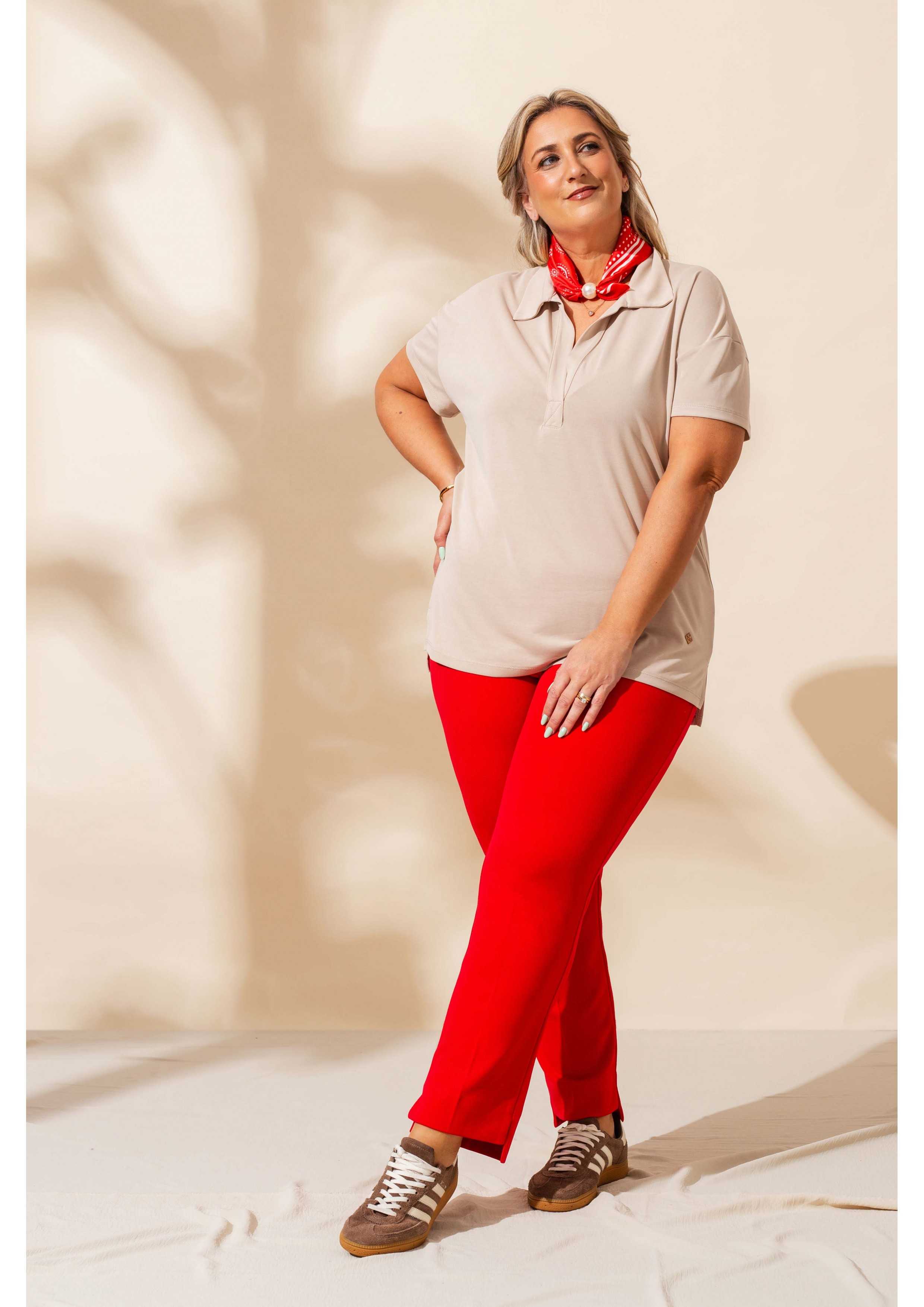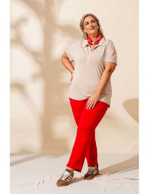 Stretch fabric pants, side slits and elastic waistband. Collection: Autumn Winter Available in Plus Sizes Own designed and manufactured product. We are a clothing manufacturing brand with over 50 years of experience Model: Height 1.70m and wearing size XL. Composition: 95% Polyester 5% Spandex