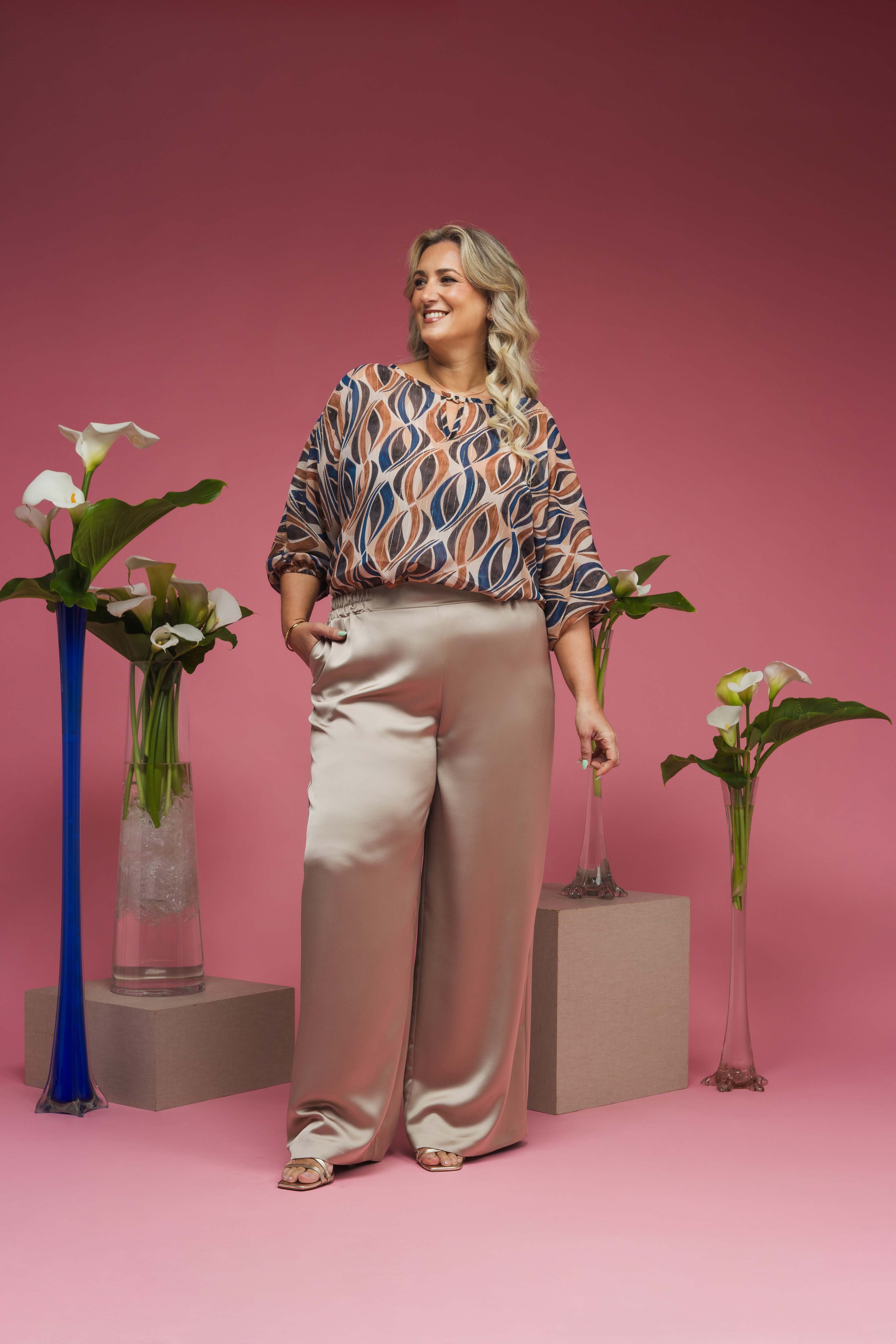 263007 - Calça em tecido liso Coleção Primavera Verão Tamanhos Grandes