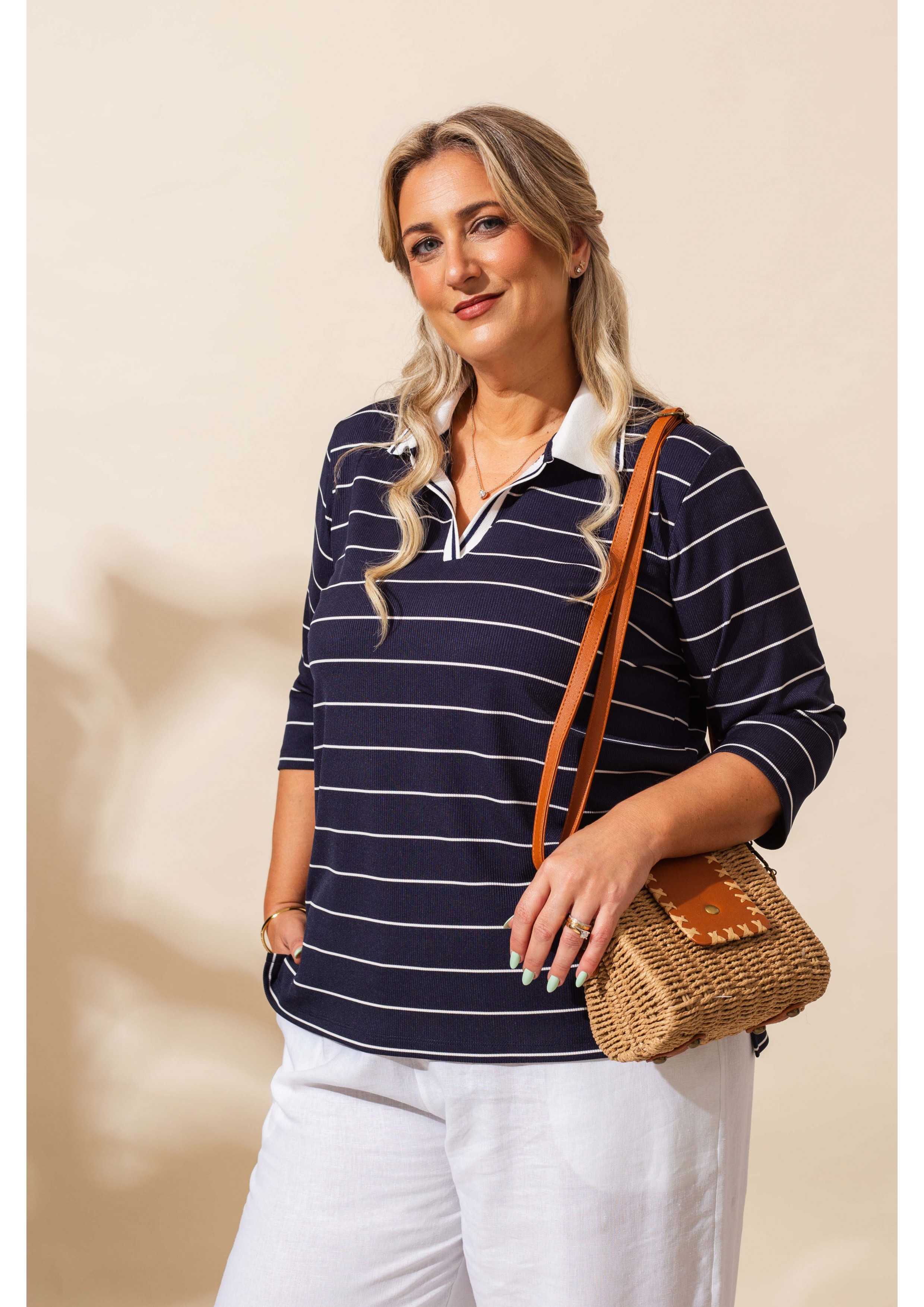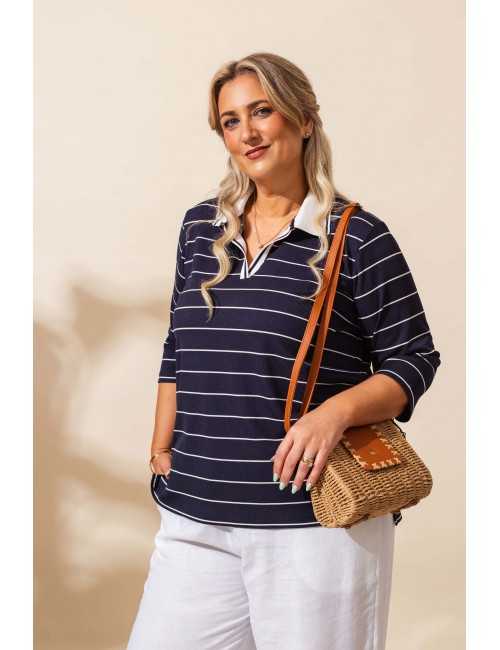 261040 - Polo em malha risca Coleção Primavera Verão Tamanhos Grandes