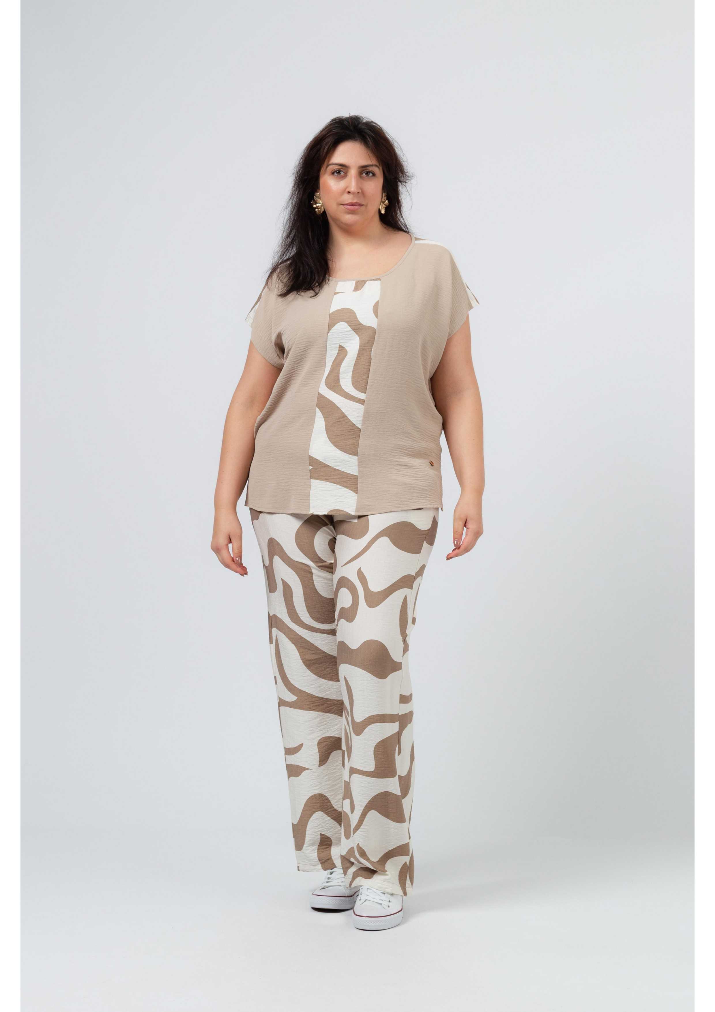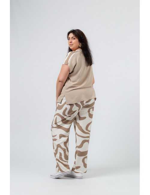 262002 - Conjunto em tecido estampado e com encaixes lisos. Calça com bolsos laterais Coleção Primavera Verão Tamanhos Grande