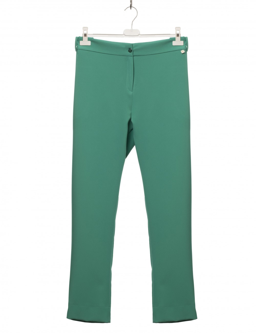 Fabric pants, classic style, with side slits. Pocket style on the back. Collection: Spring Summer Model: Height 1.70m and wearing size 44.
