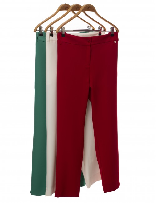 Fabric pants, classic style, with side slits. Pocket style on the back. Collection: Spring Summer Available in Plus Sizes. Product of our own design and manufacture. We are a clothing manufacturing brand with over 50 years of experience. Model: Height 1.70m and wearing size 44. Composition: 88% Polyester 12% Elastane