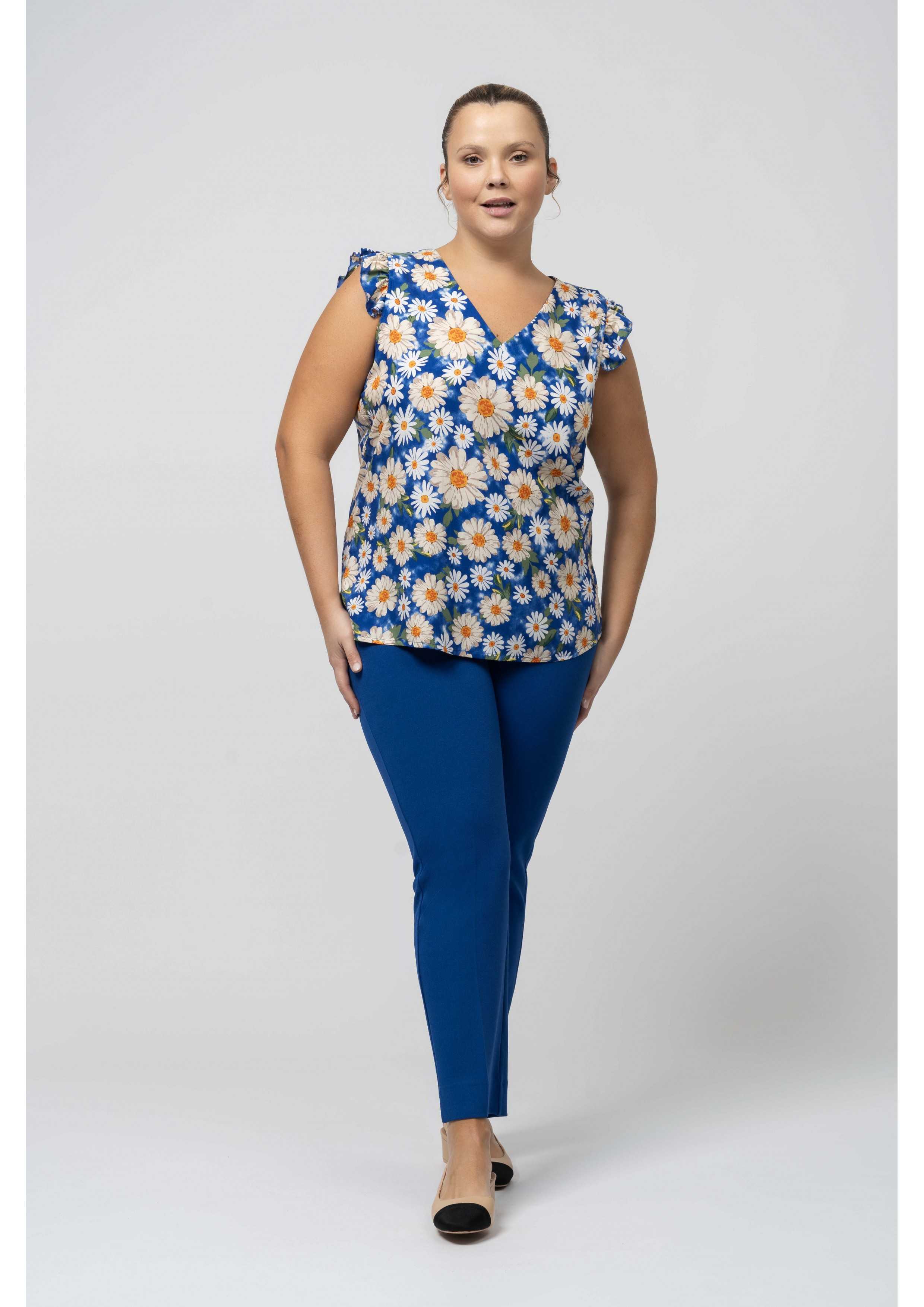 Plain knit pants with side slits and a belt with two buckles and elastic at the back | Collection: Spring Summer | Model 1: Height 1.67m and wearing size G in blue | Model 2: Height 1.70m and wearing size 2XL