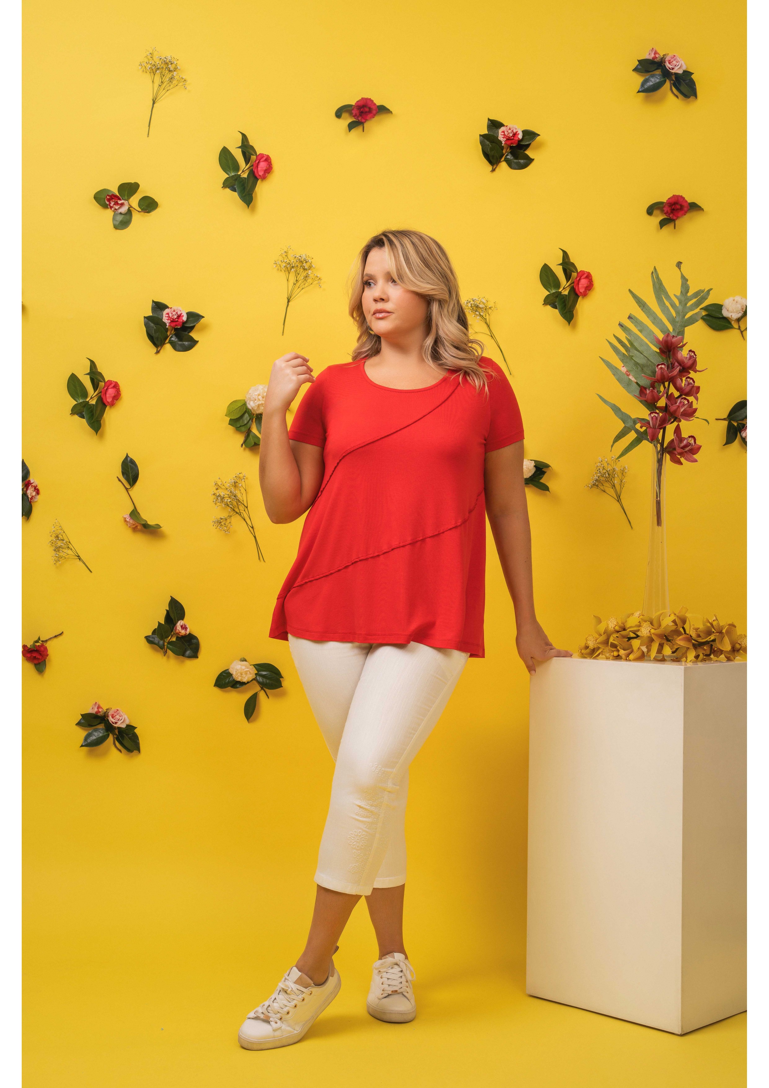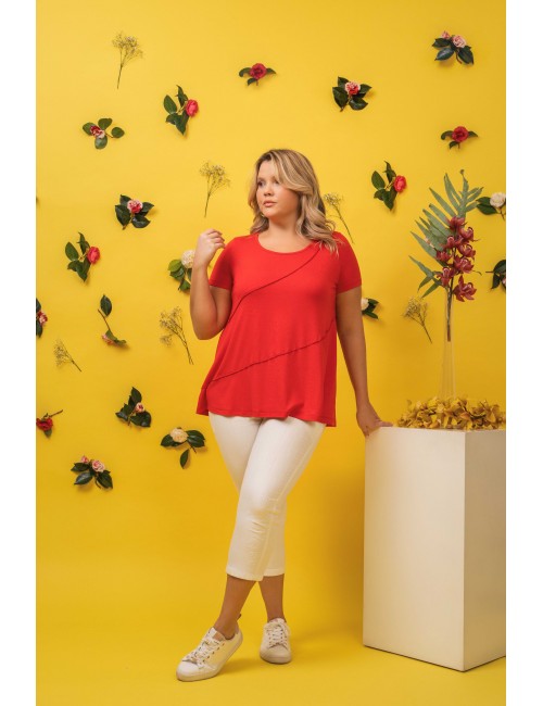 Plain knit short-sleeve tunic. Collection: Spring Summer Available in Plus Sizes Own design and manufacturing product. We are a clothing manufacturing brand with over 50 years of experience Model: Height 1.70m and wearing size 2XL. Composition: 94% Viscose 6% Elastane