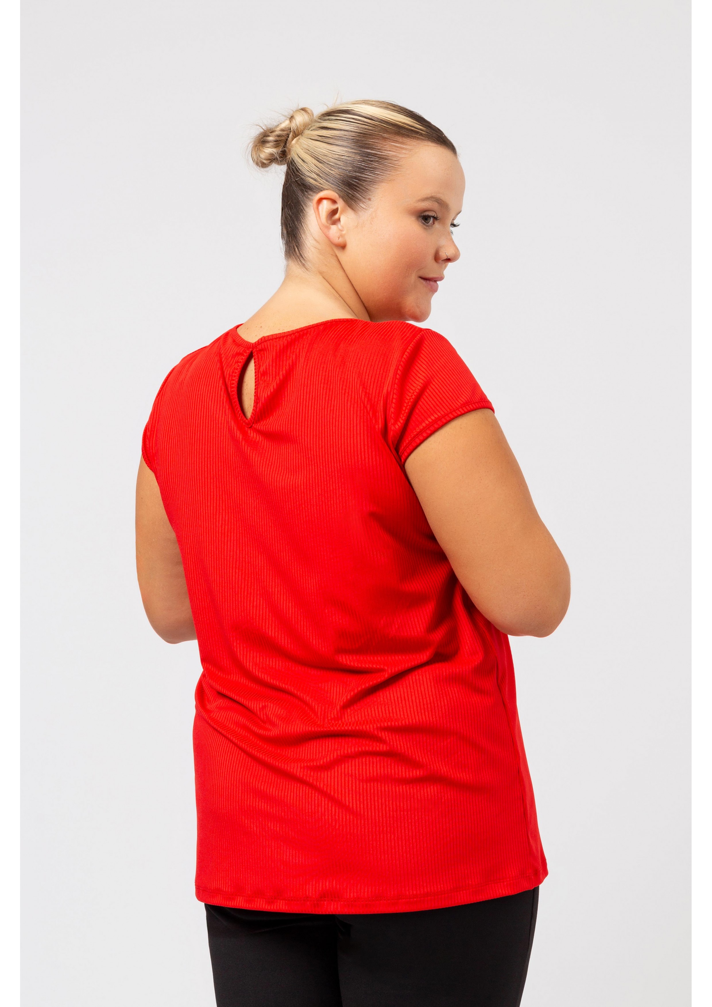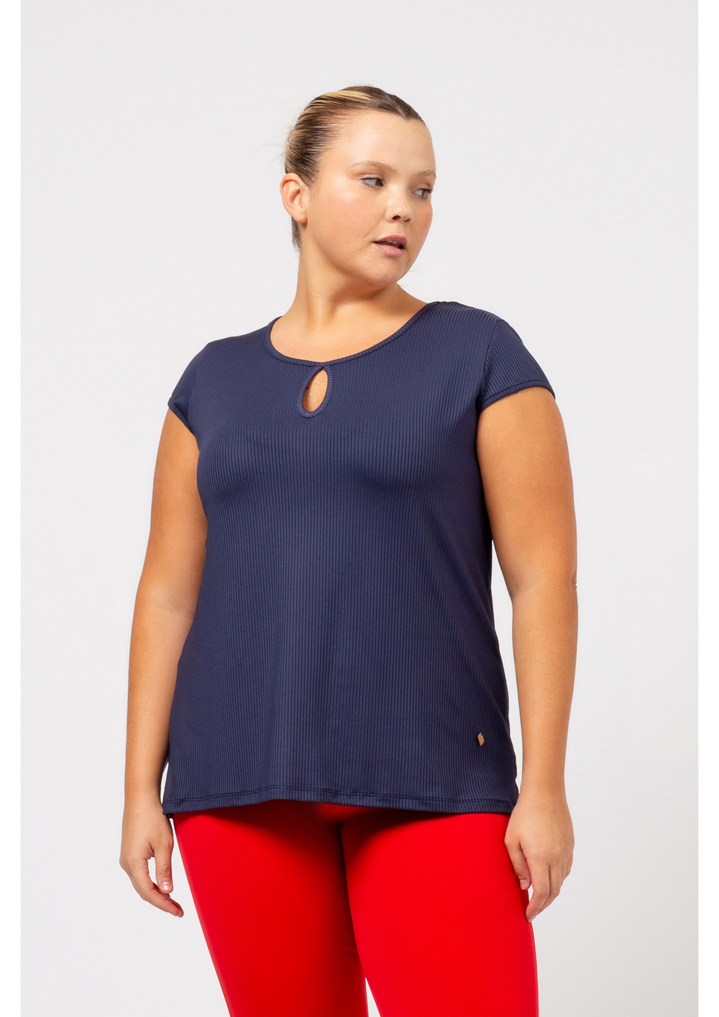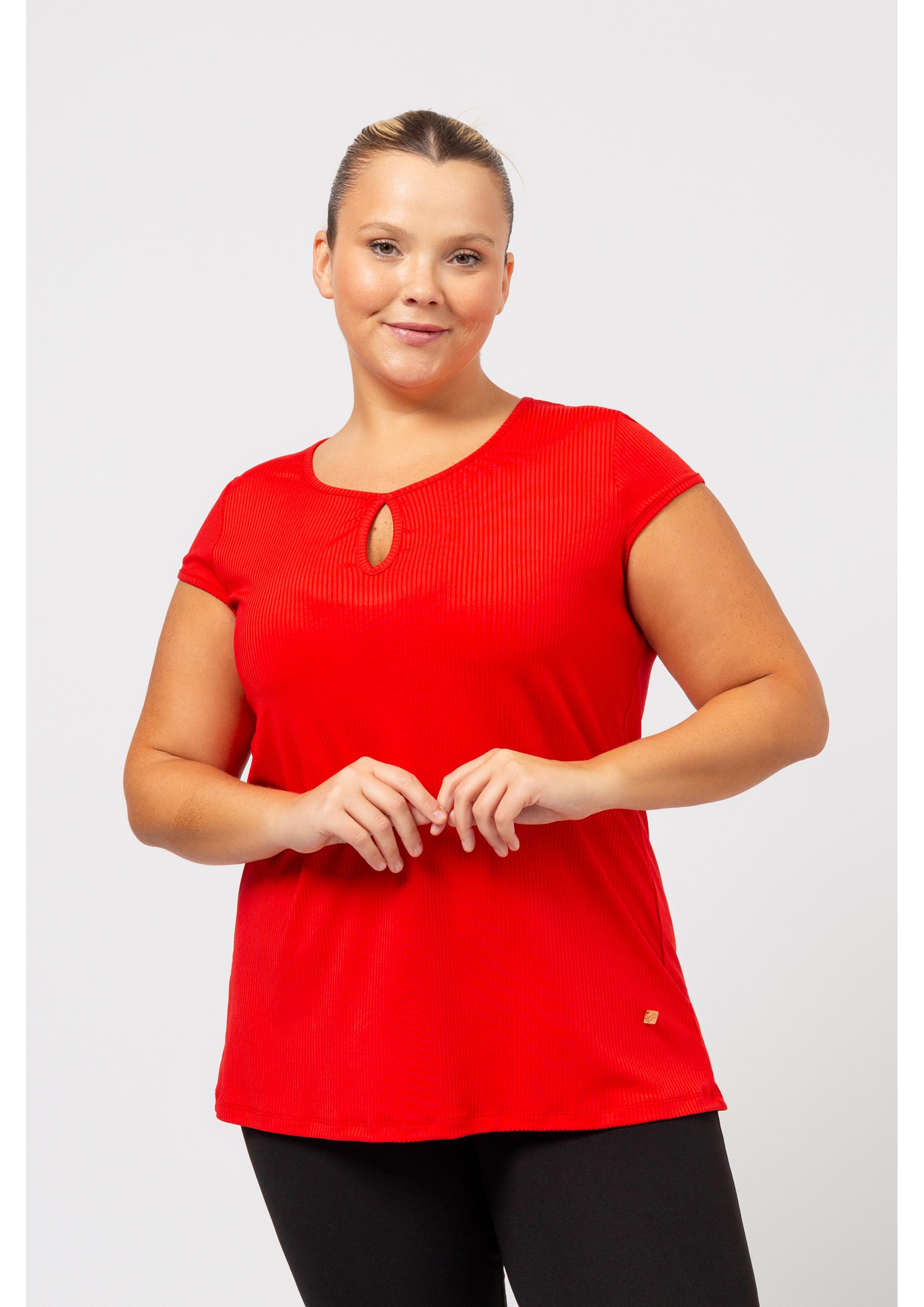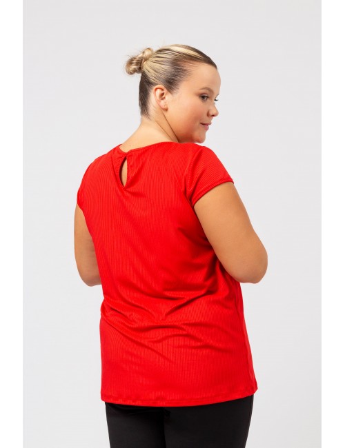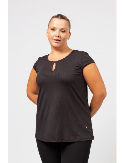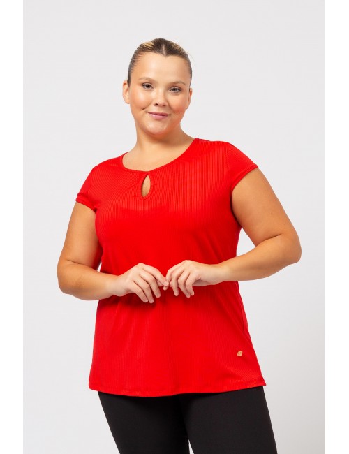 Plain knit sweater, ribbed collar, round neck with tear drop front and back. Short sleeves with cap. Collection: Spring Summer Available in Plus Sizes Designed and manufactured by ourselves. We are a clothing manufacturing brand with over 50 years of experience Model: Height 1.70m and is wearing size 2XL. Composition: 97% Polyester 3% Elastane