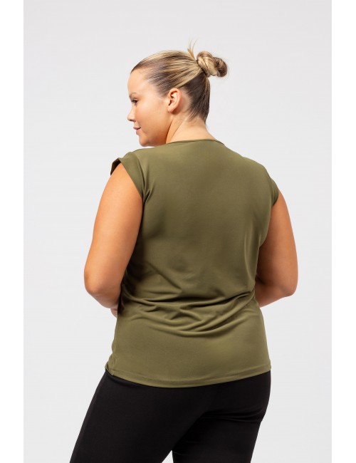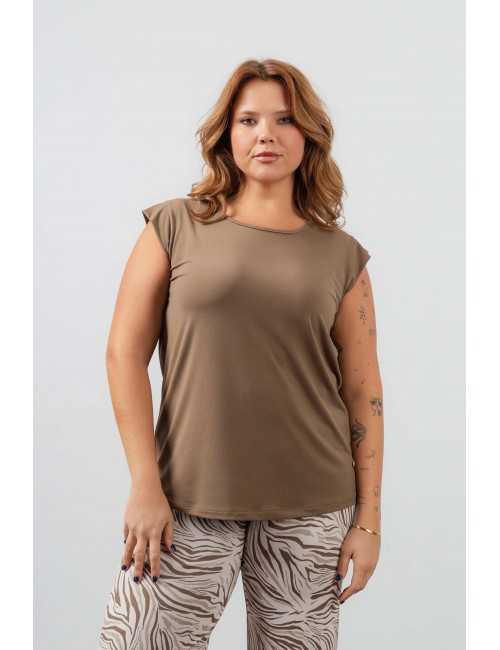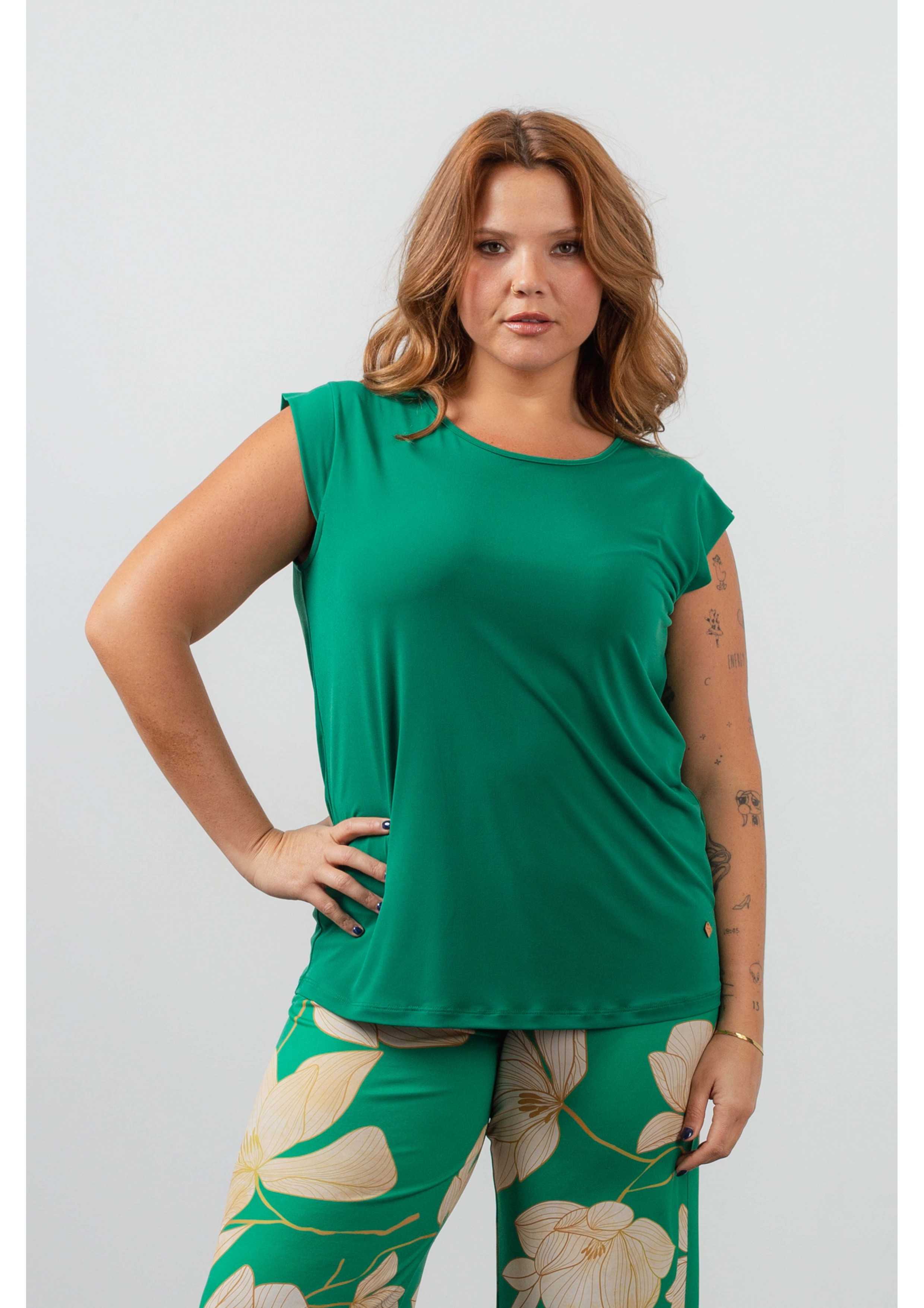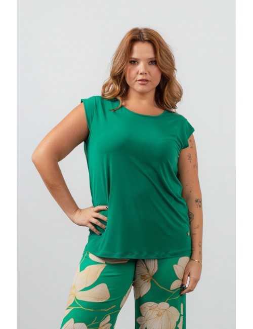 Plain knit sweater, cap sleeve and round neckline. Collection: Spring Summer Available in Plus Sizes Own design and manufacturing product. We are a clothing manufacturing brand with over 50 years of experience Model: Height 1.70m and wearing size 2XL. Composition: 94% Polyester 6% Elastane