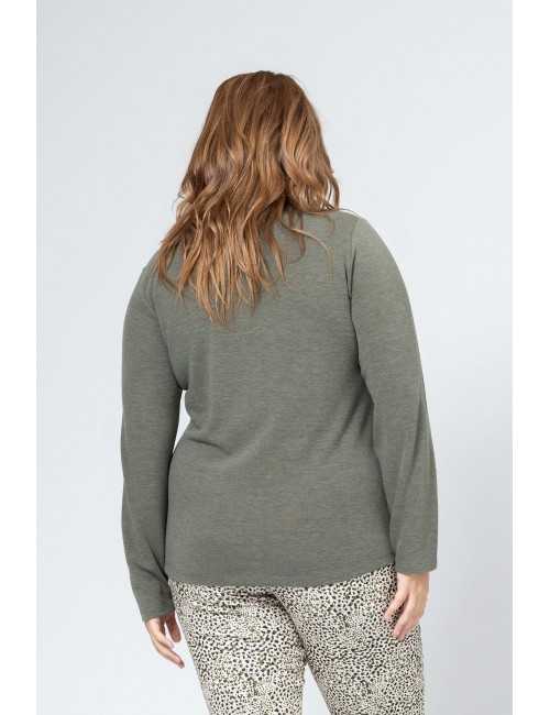 Solid knit sweater, long sleeves, round neckline, featuring a tree of life application. Collection: Autumn Winter Available in Plus Sizes Own design and manufacturing product. We are a clothing brand with over 50 years of experience Model: Height 1.65m and is wearing size 2XL. Composition: Solid: 67% Polyester 28% Rayon 5% Elastane | Floral: 95% Polyester 5% Elastane
