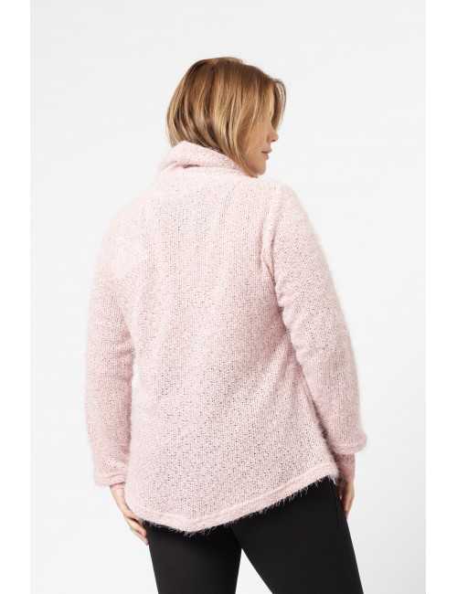 Plain knit sweater, long sleeves, wide falling high collar. Rounded base. Collection: Autumn Winter Model: Height 1.70m and is wearing size 2XL.