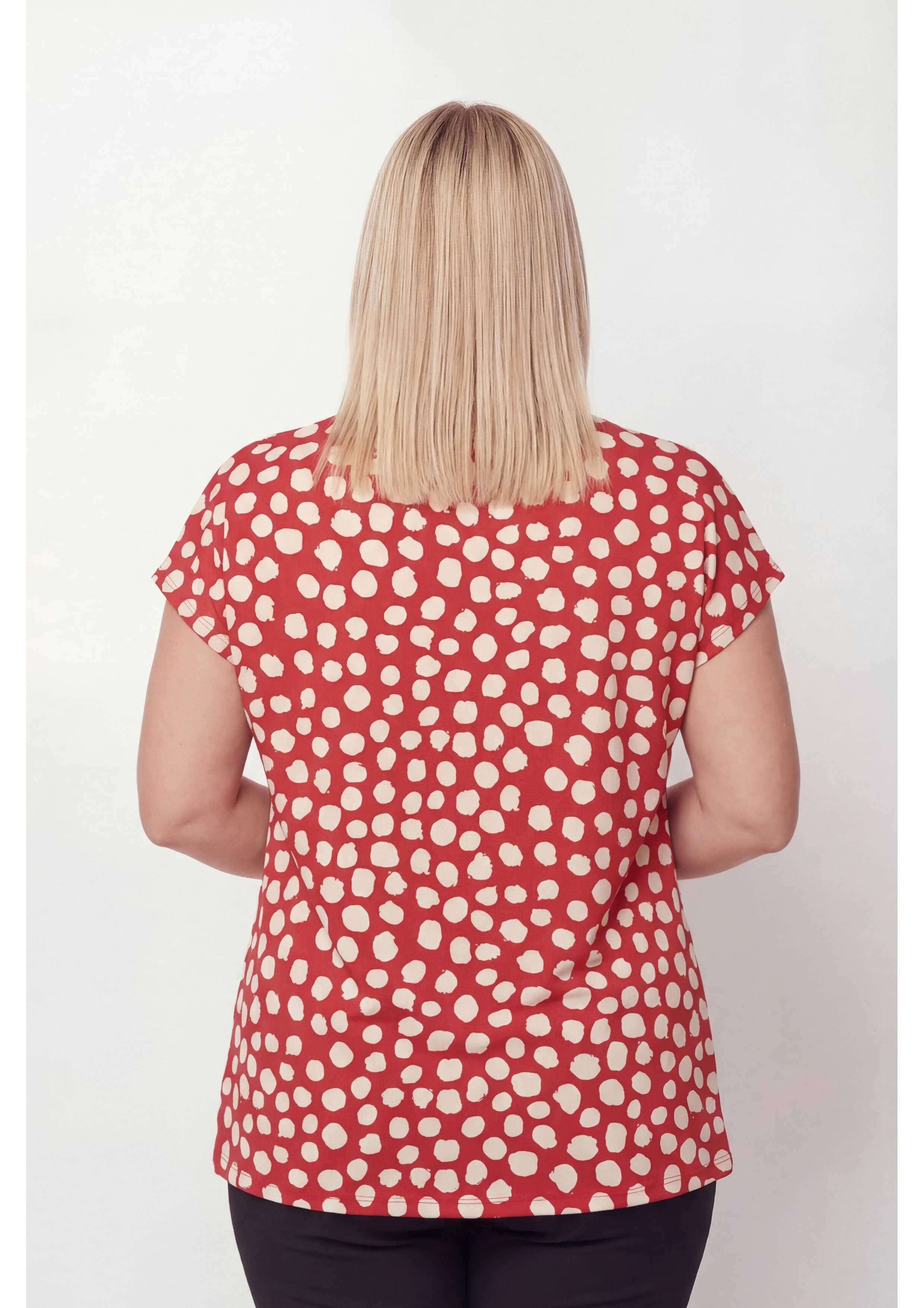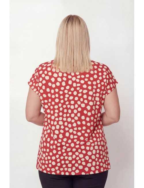 Printed knit sweater, rough dots, round neckline, dropped shoulder. Available in Plus Sizes Product of our own design and manufacture. We are a clothing manufacturing brand with over 50 years of experience