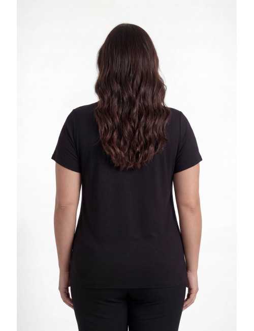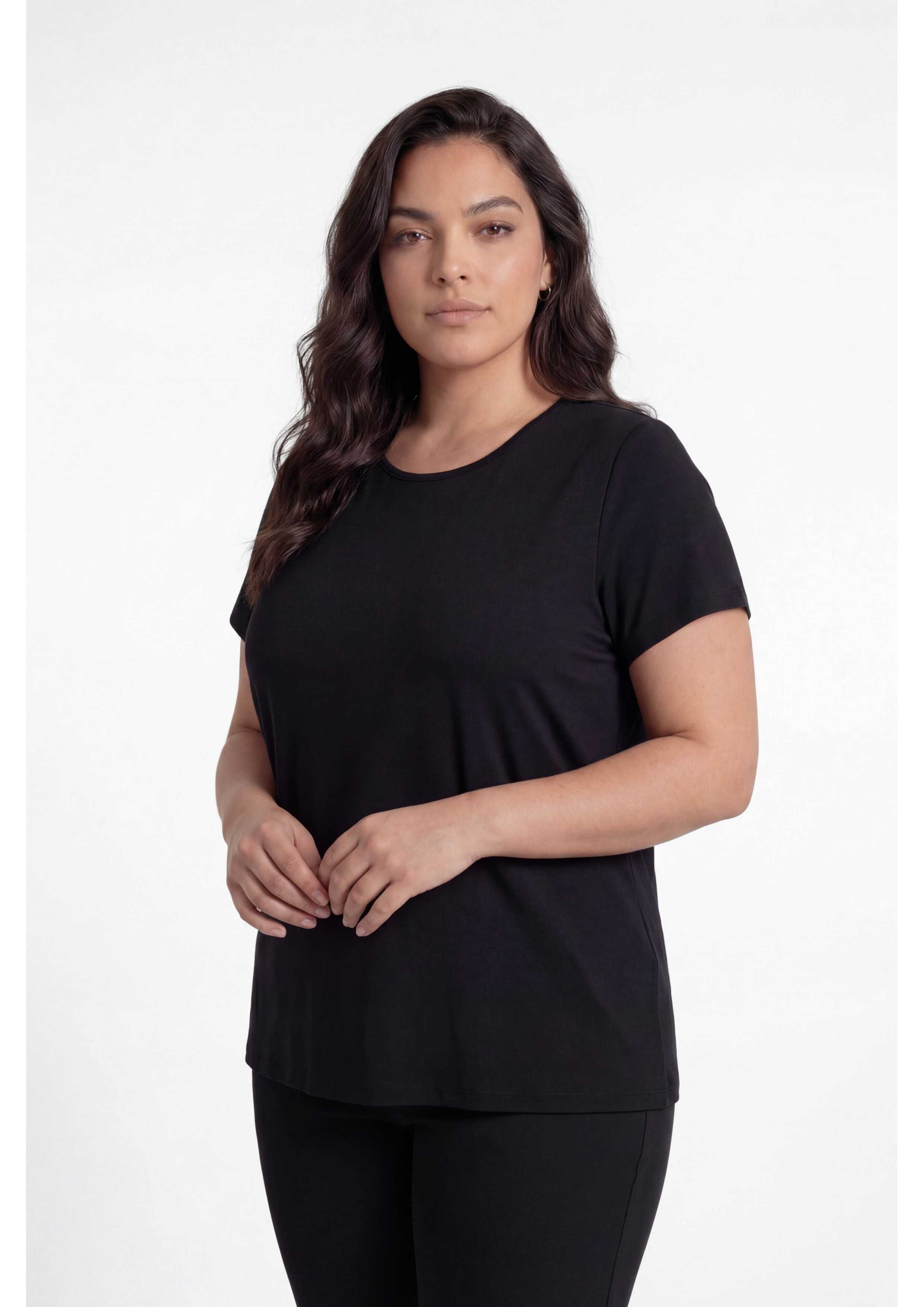 Plain knit sweater, round neckline, straight cut, short sleeves with shoulder pads, Available in Plus Sizes Product of our own design and manufacture. We are a clothing manufacturing brand with over 50 years of experience