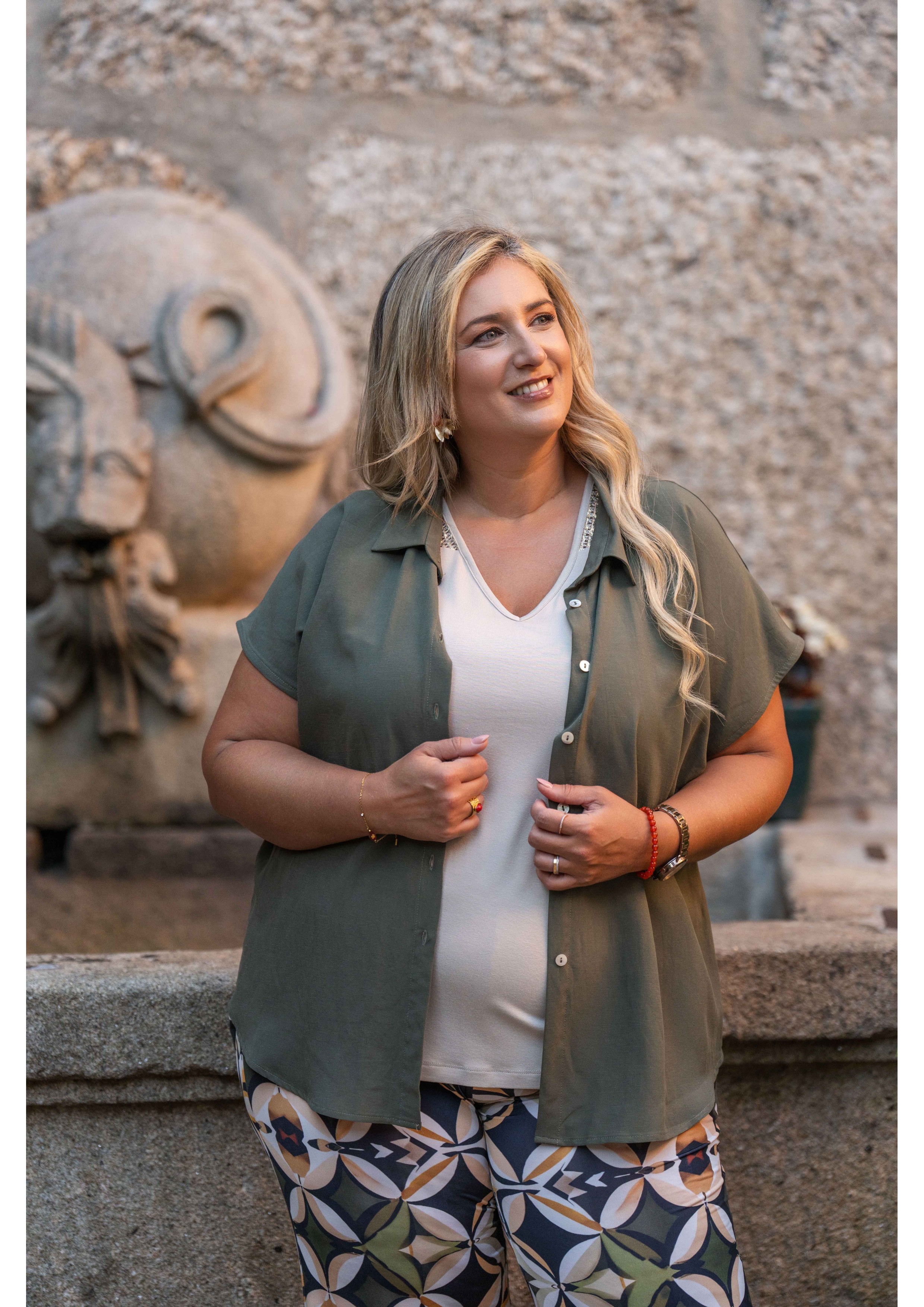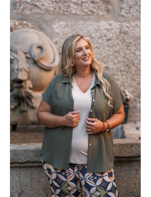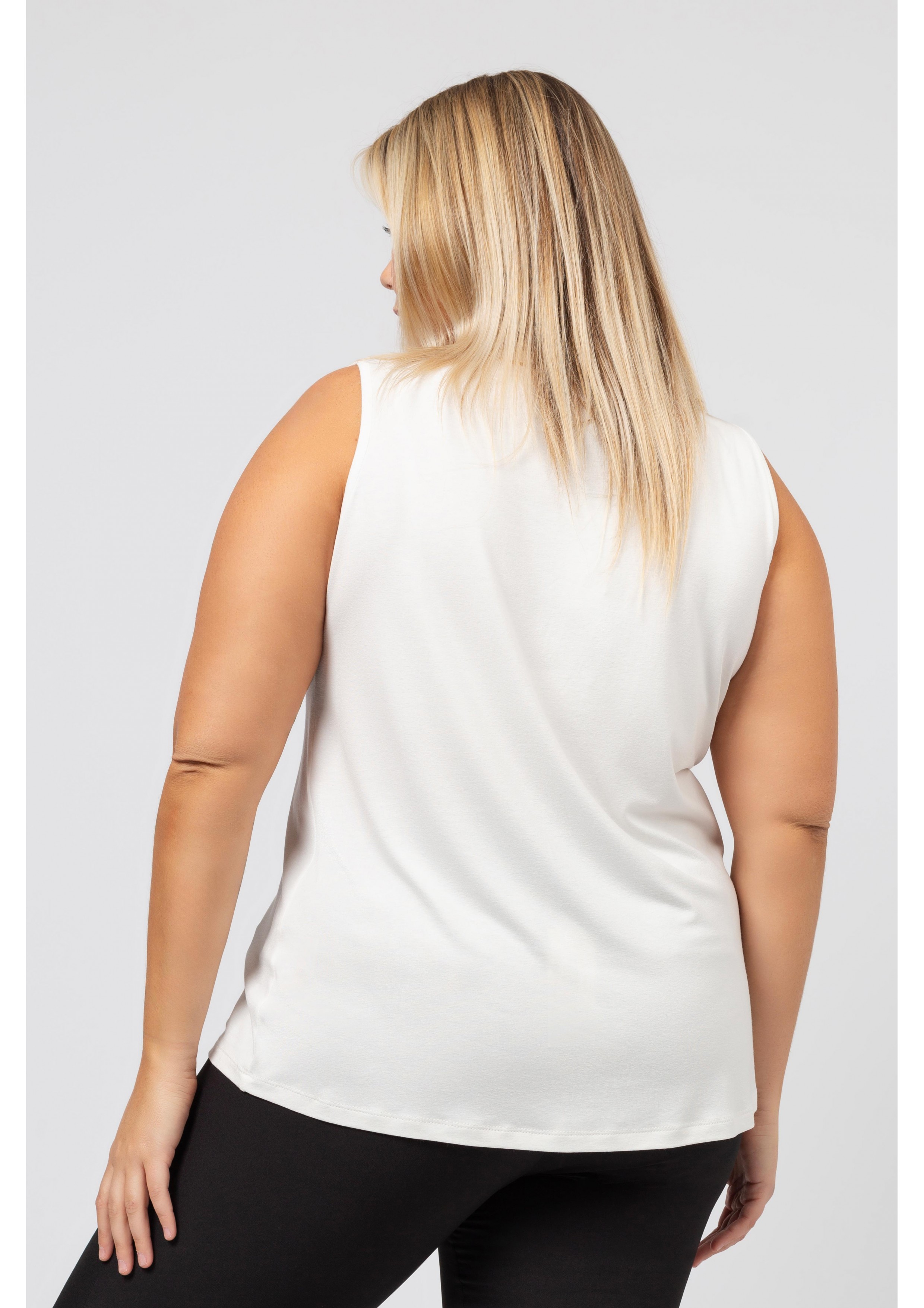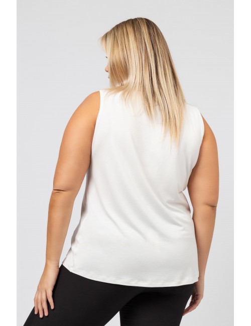 Plain knit top, V-neck, with cutaway shoulders in metallic lace. Collection: Spring Summer Available in Plus Sizes Own design and manufacturing. We are a clothing manufacturing brand with over 50 years of experience Model: Height 1.70m wearing size 2XL, in white Model: Height 1.65m wearing size 3XL, in beige Composition: Plain: 94% Viscose 6% Elastane | Shine: 37% Polyester 37% Cotton 1% Elastane