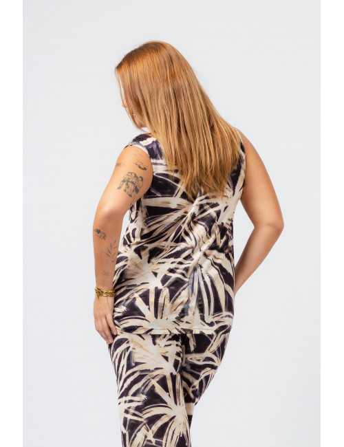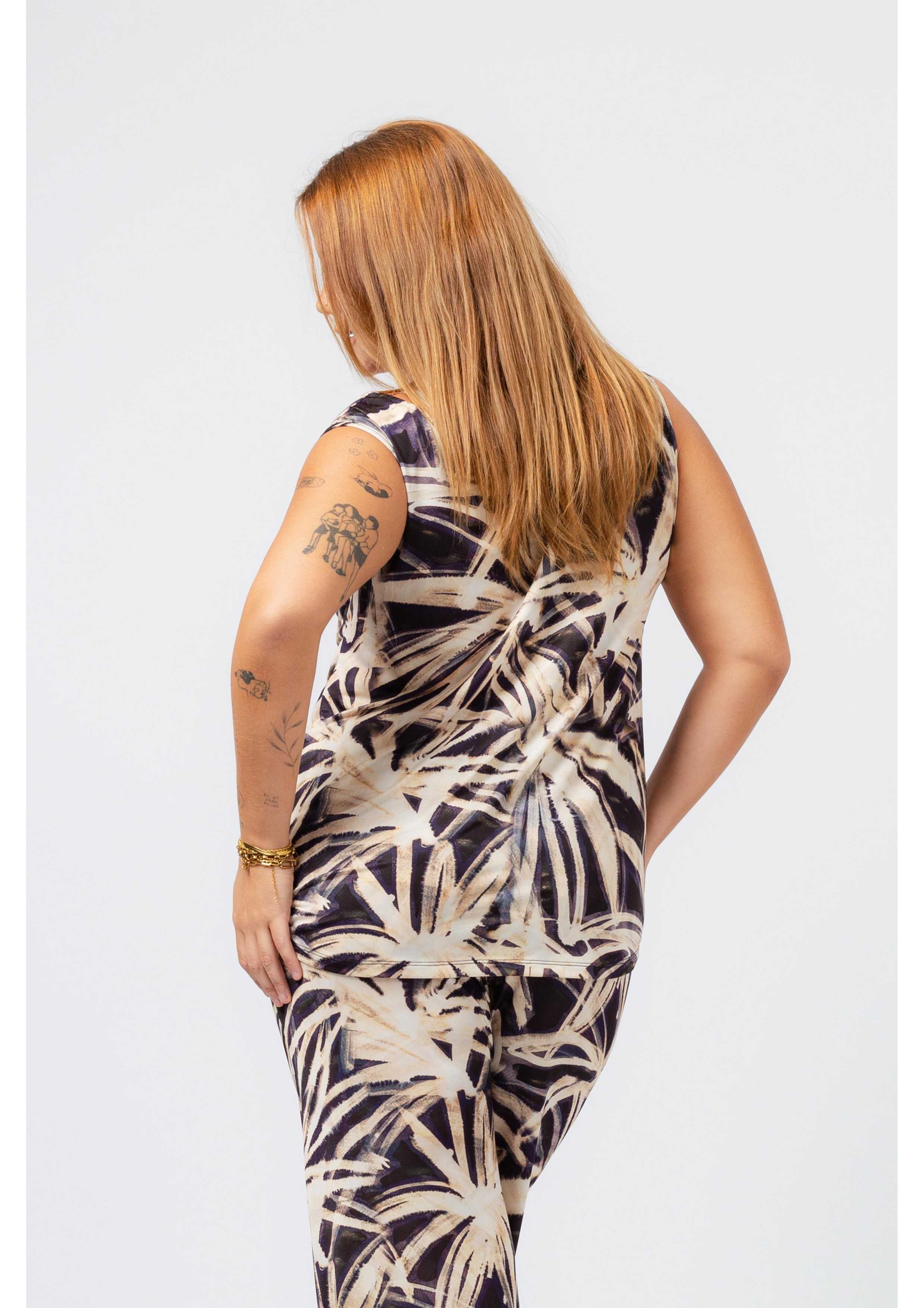 Printed knit top, slightly fitted cut, draped neckline. Collection: Spring Summer Available in Plus Sizes Own design and manufacturing product. We are a garment manufacturing brand with over 50 years of experience Model: Height 1.70m and is wearing size XL. Composition: 94% Polyester 6% Elastane
