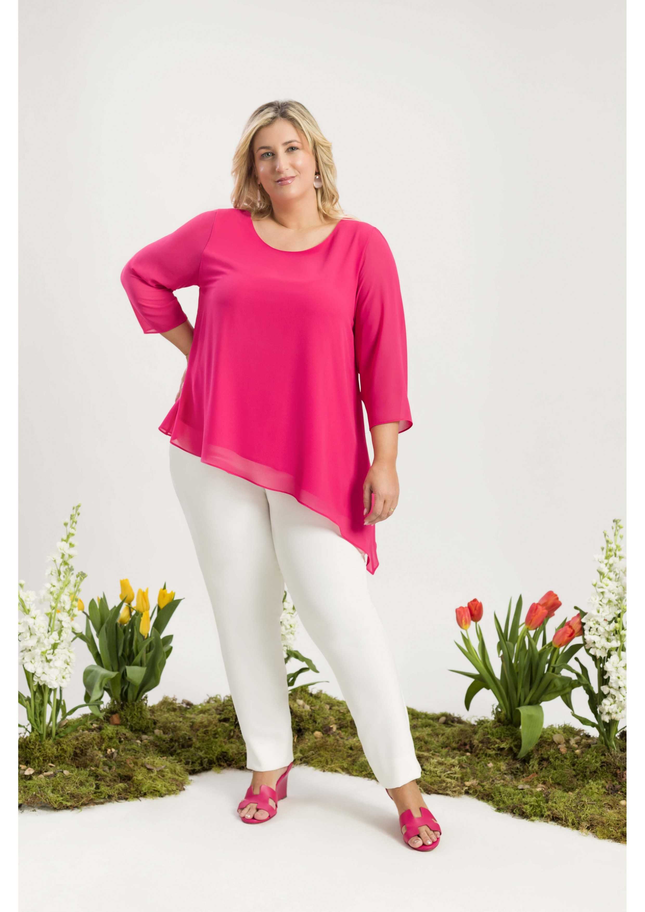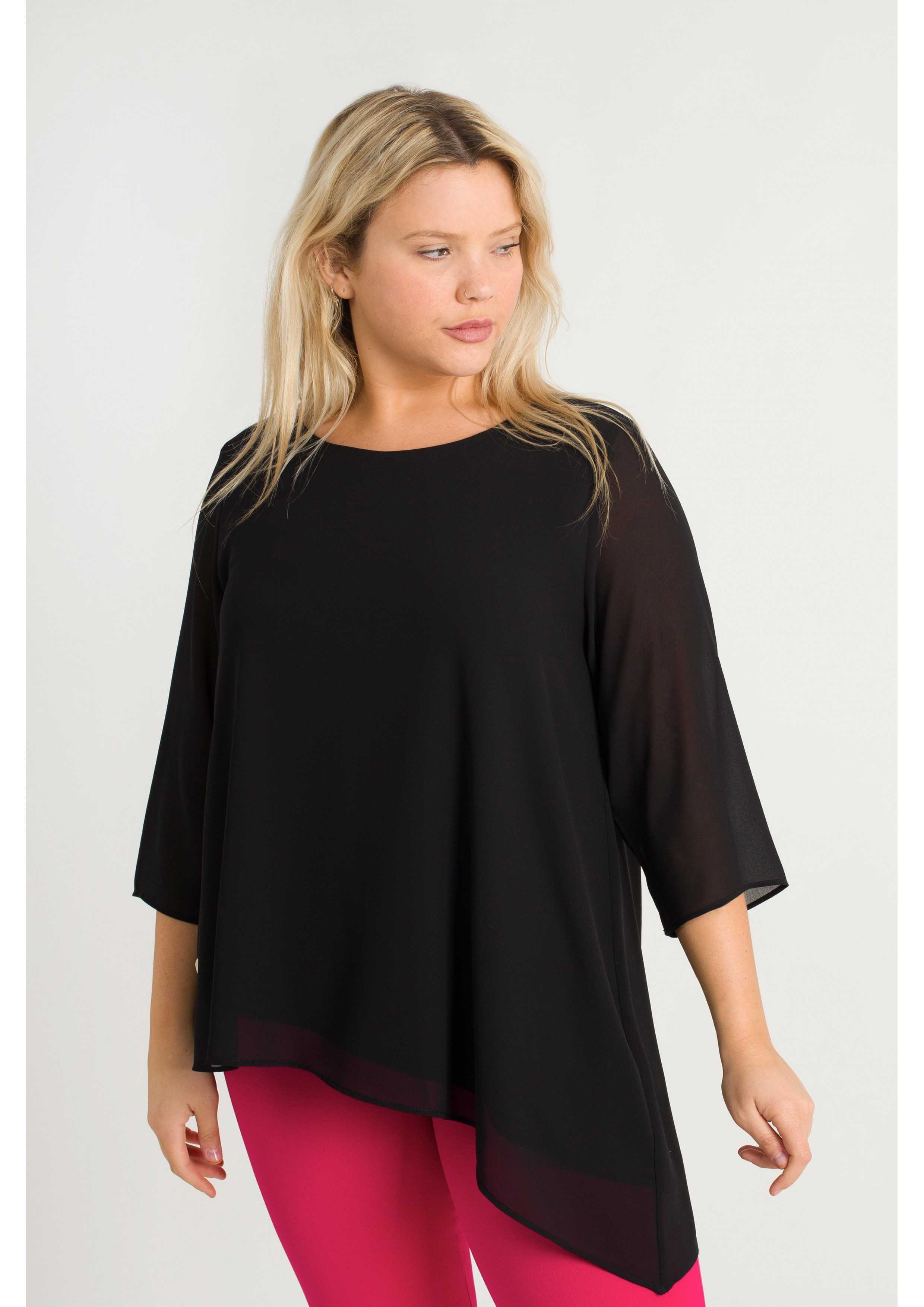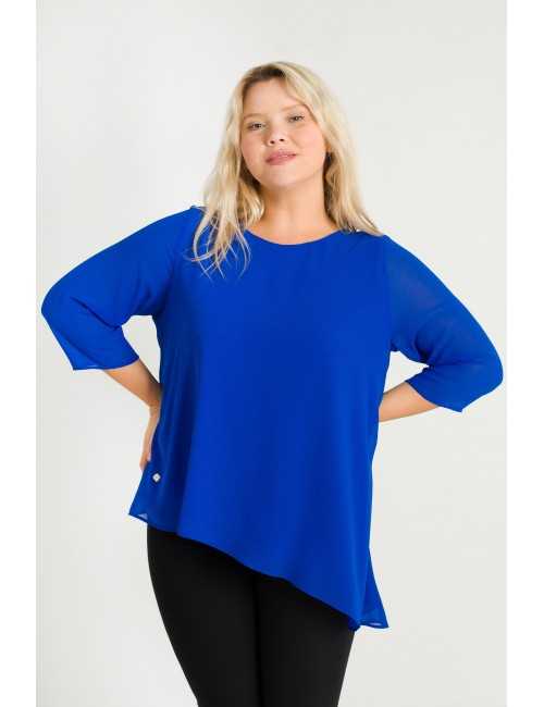 Tunic in fluid plain fabric, 3/4 sleeves, slightly flared with a side point. Collection: Spring Summer Available in Plus Sizes Own design and manufacturing product. We are a clothing brand with over 50 years of experience. Model: Height 1.70m wearing size 2XL in blue and black. Model: Height 1.65m wearing size 3XL in fuchsia pink. Composition: Outer: 100% Polyester / Lining: 94% Polyester 6% Elastane