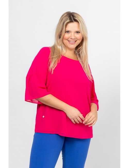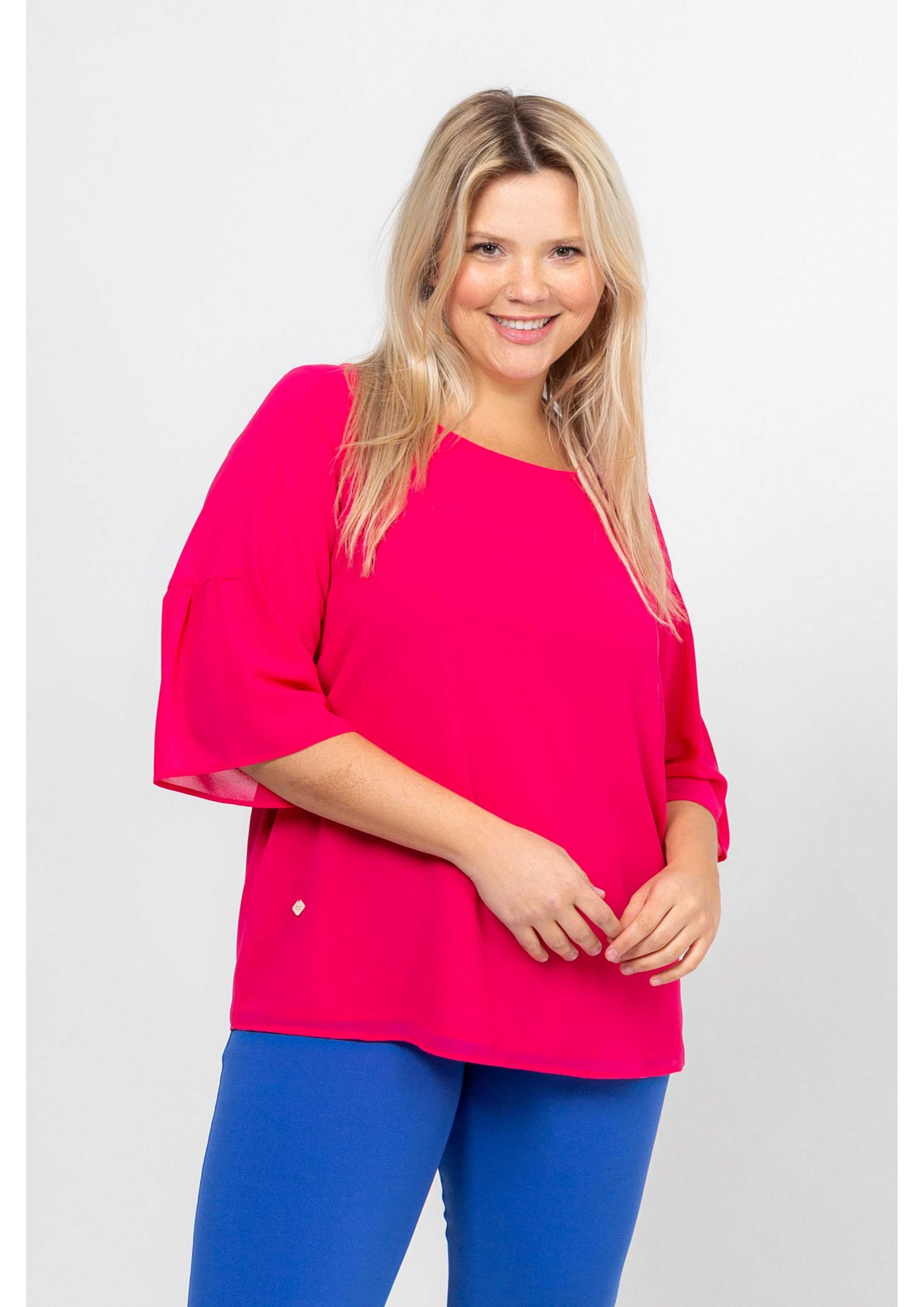 Tunic in flowing fabric, round neckline, 3/4 sleeve, with gathered inset. Collection: Spring Summer Model: Height 1.70m and wearing size 2XL.