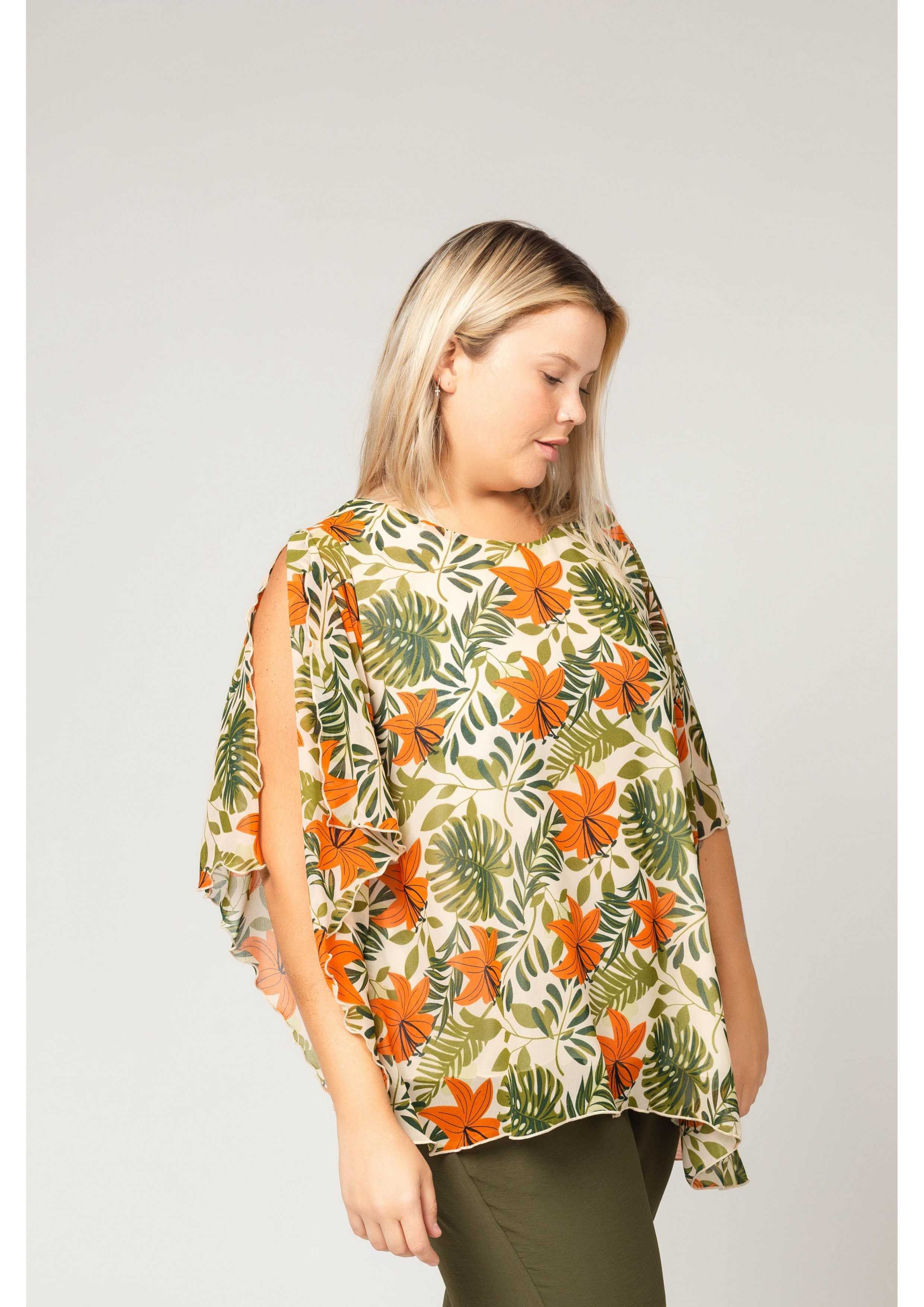Printed fabric tunic, 3/4 sleeve with slit, slightly flared with side point, rolling finish. Collection: Spring Summer Available in Plus Sizes Own design and manufacturing product. We are a clothing manufacturing brand with over 50 years of experience. Model: Height 1.70m wearing size 2XL. Composition: 100% Polyester