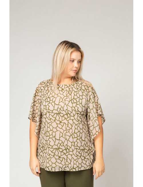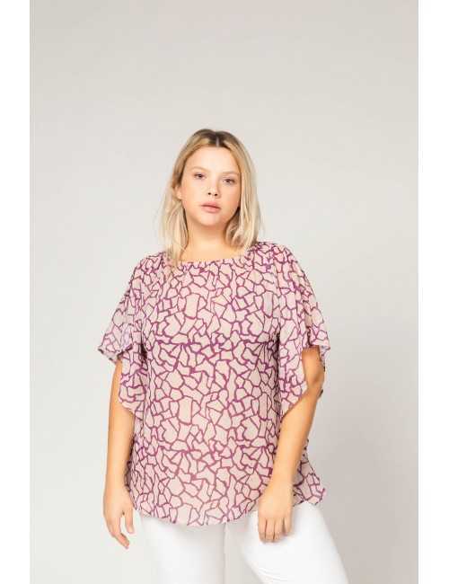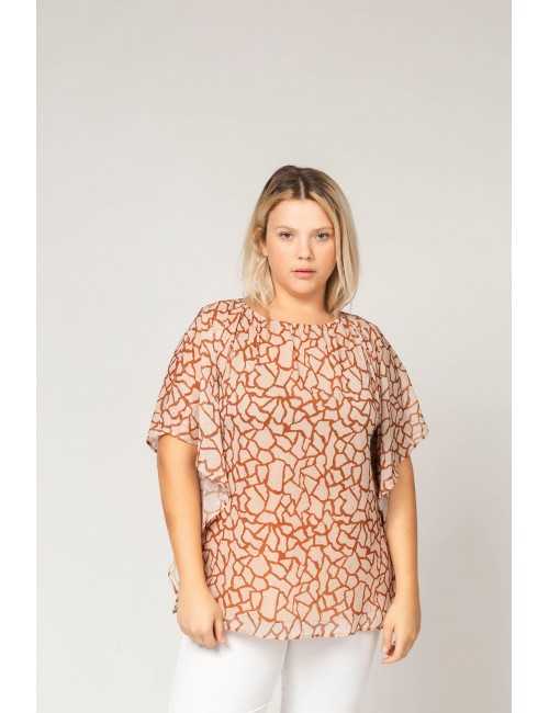 Poncho-style tunic in printed fabric Spring Summer Collection Plus Sizes