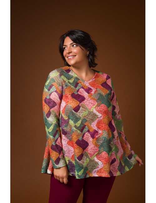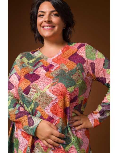 Knit tunic, long sleeves, round neckline with placket and covered button. Collection: Autumn Winter Available in Plus Sizes Own design and manufacturing product. We are a clothing brand with over 50 years of experience Composition: 97% Polyester 3% Elastane