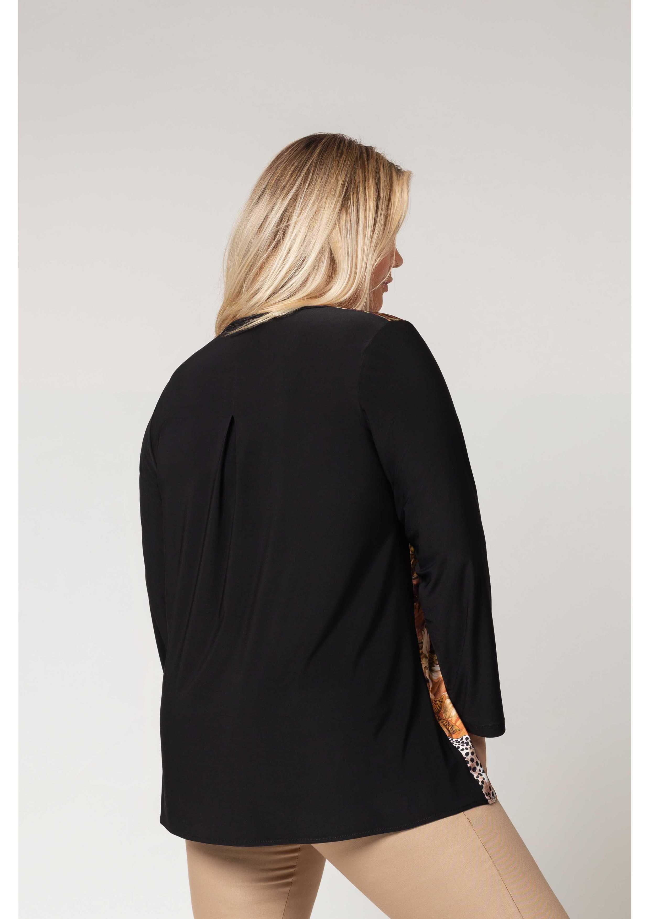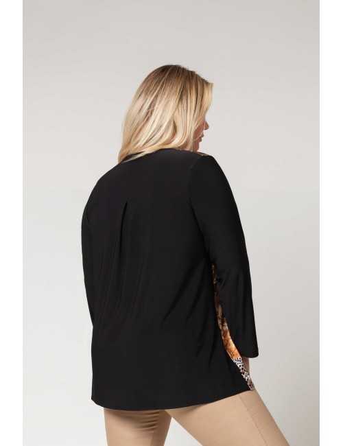 Tunics in printed satin fabric with a round neckline and back in smooth lycra knit and long sleeves Collection: Autumn Winter Available in Plus Sizes Product designed and manufactured by us. We are a clothing manufacturing brand with over 50 years of experience. Model: Height 1.70m and is wearing size 2XL. Composition: 96% Polyester 4% Elastane