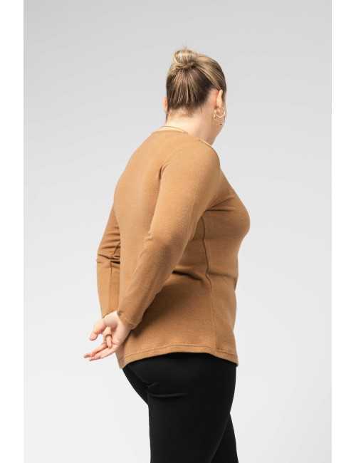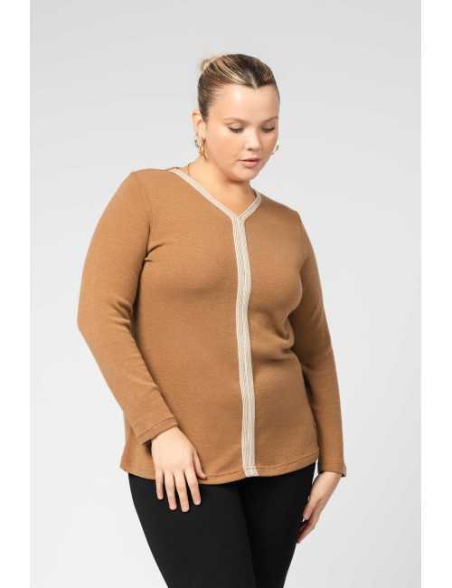 Knit tunic with long sleeves and V-neck. Collection: Autumn Winter Available in Plus Sizes Own design and manufacturing product. We are a clothing brand with over 50 years of experience Model: Height 1.70m and wearing size 2XL. Composition: 80% Polyester 15% Viscose 5% Elastane