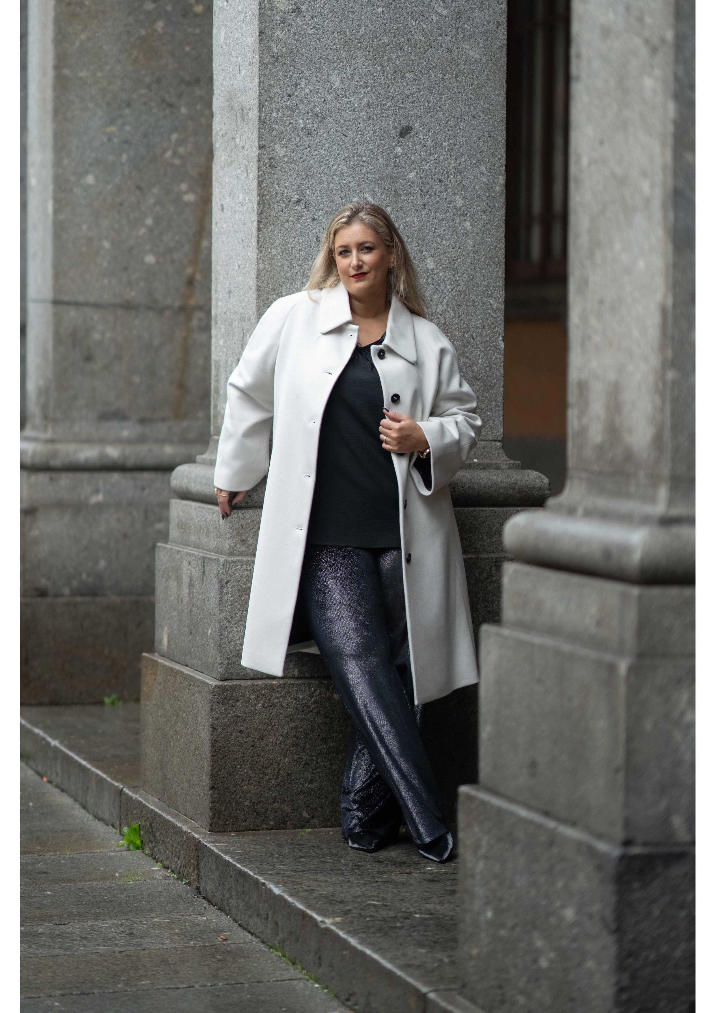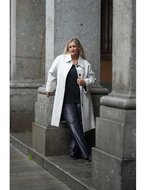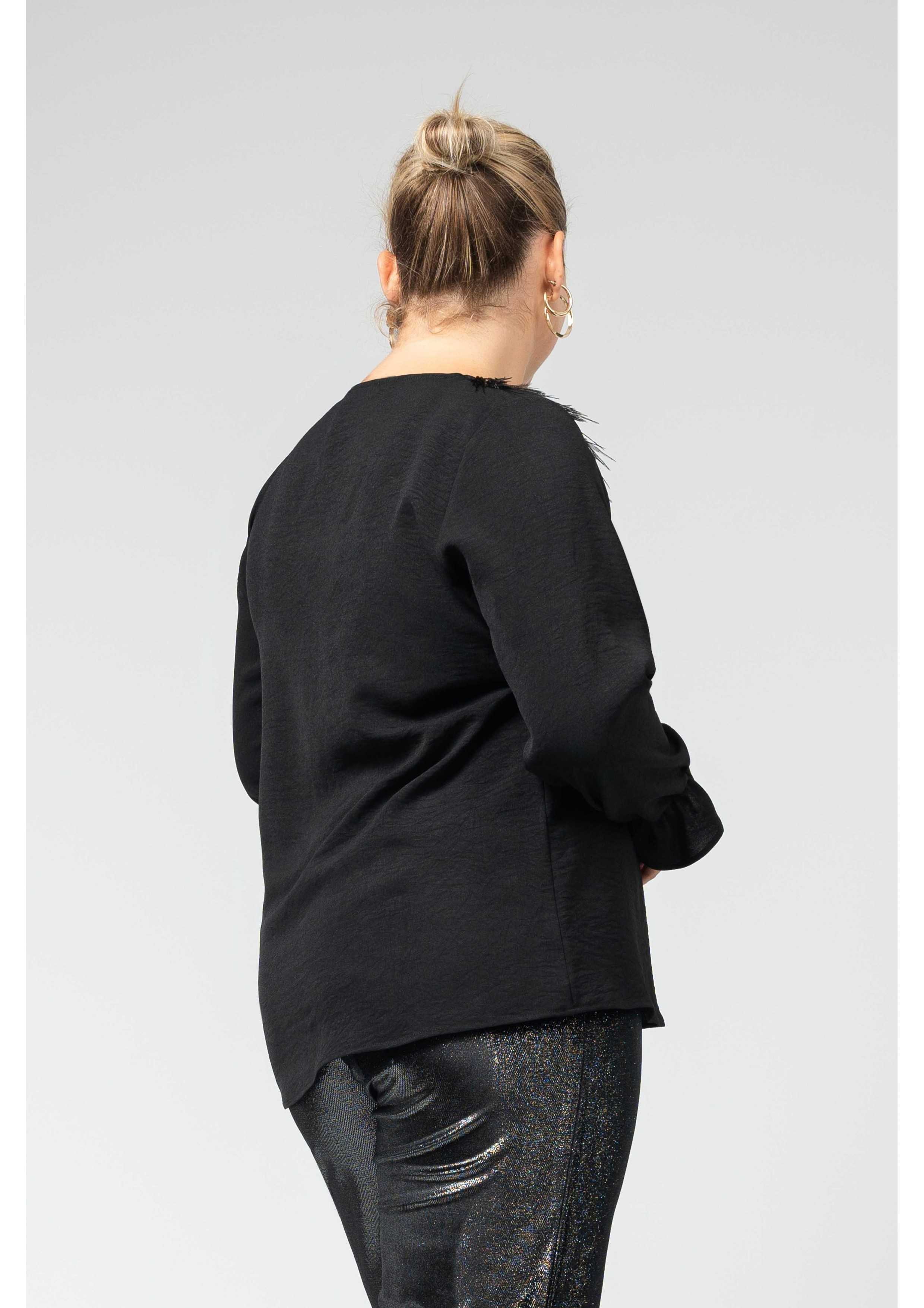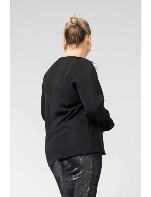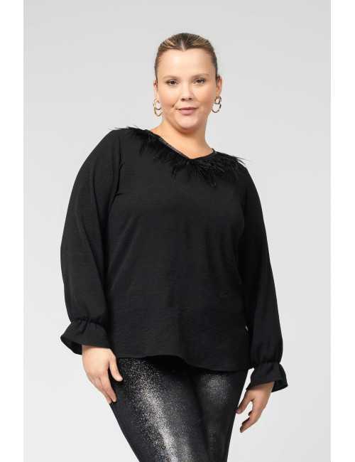 Plain fabric tunic with V-neck and feathers Collection: Autumn Winter Model: Height 1.70m and wearing size 2XL.