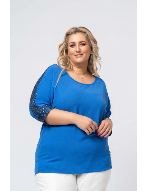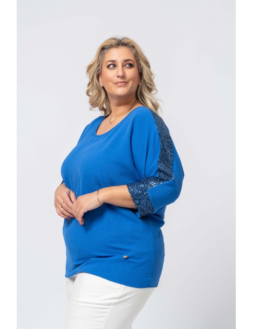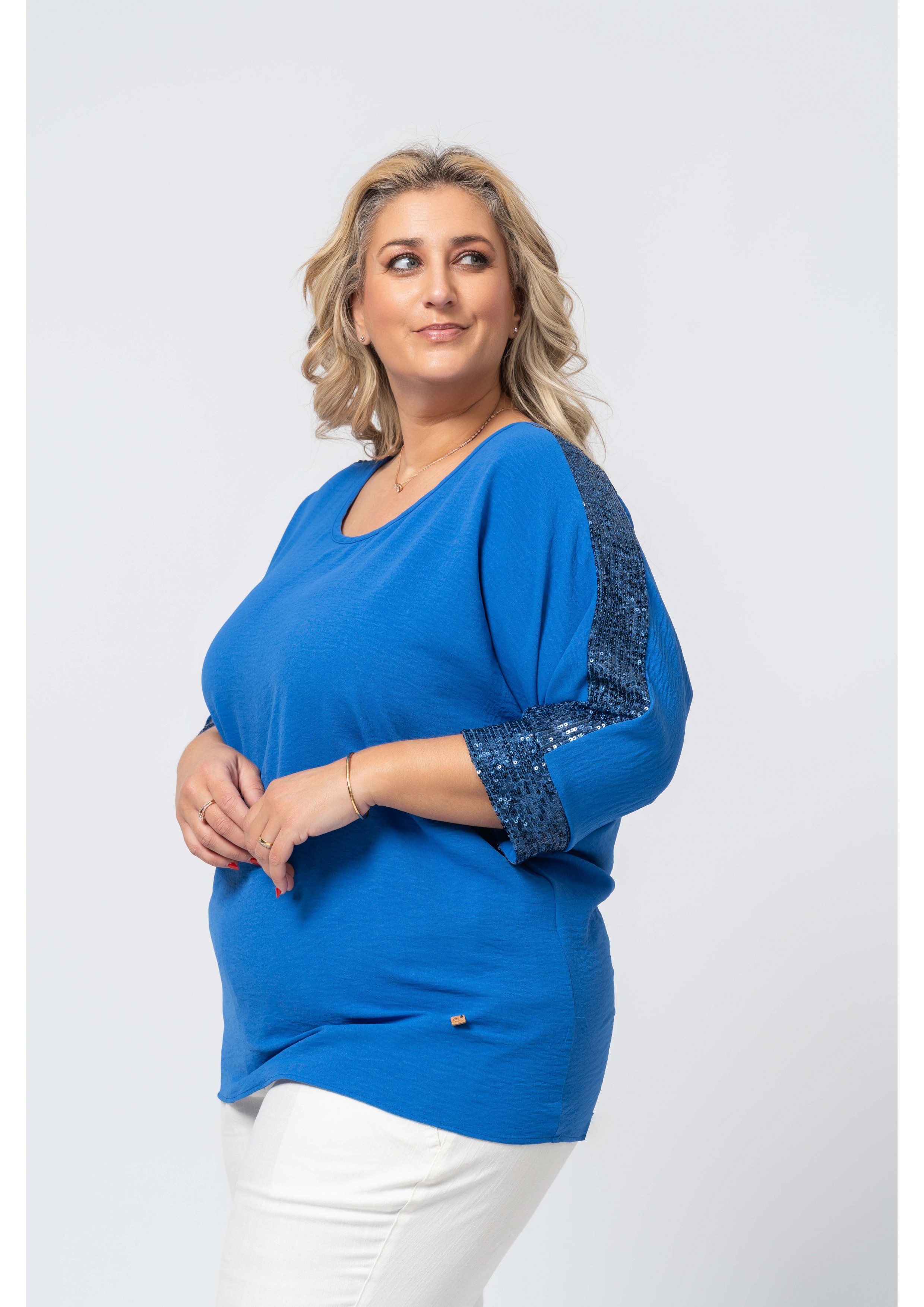 Tunic in fabric with batwing sleeves and sequins, round neckline. Collection: Spring Summer Available in Plus Sizes Own design and manufacturing product. We are a clothing manufacturing brand with over 50 years of experience Model: Height 1.65m and wearing size 3XL. Composition: 100% Polyester | 93% Polyester 7% Elastane
