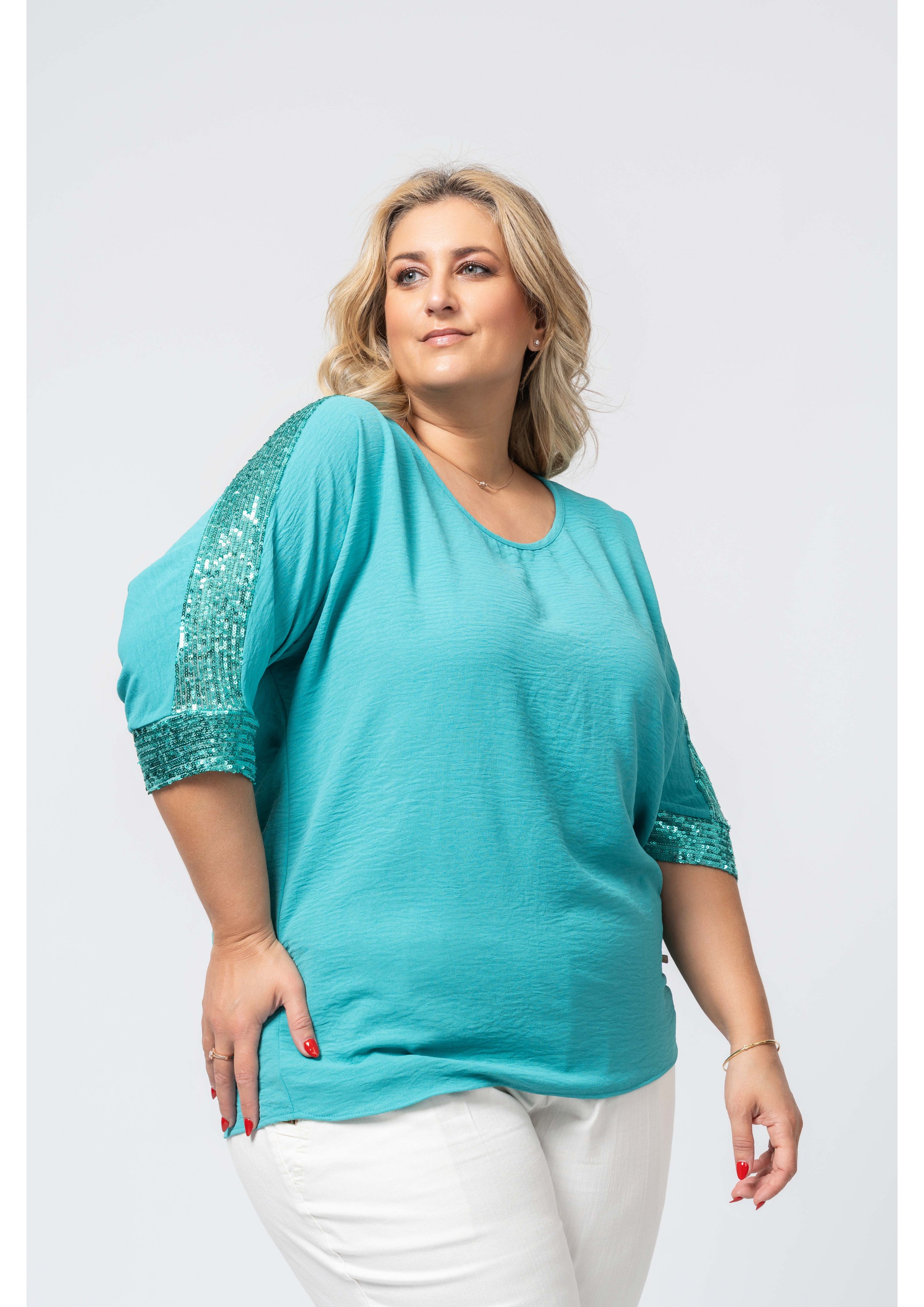 Tunic in fabric with batwing sleeves and sequins, round neckline. Collection: Spring Summer Model: Height 1.65m and wearing size 3XL. | 93% Polyester 7% Elastane