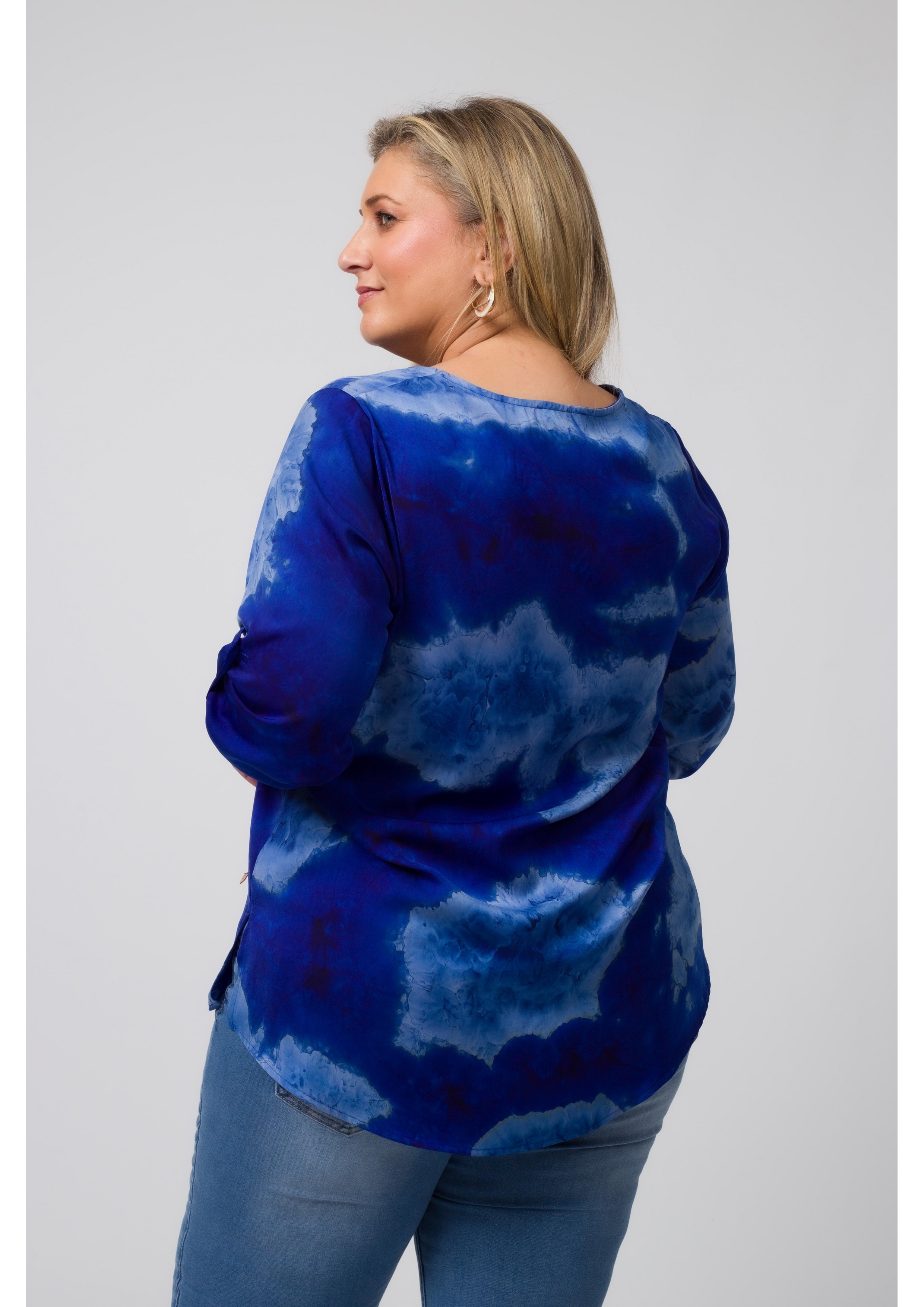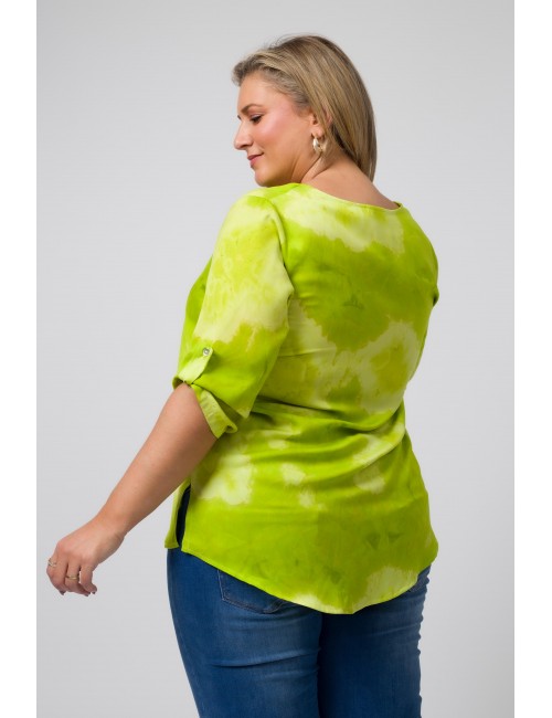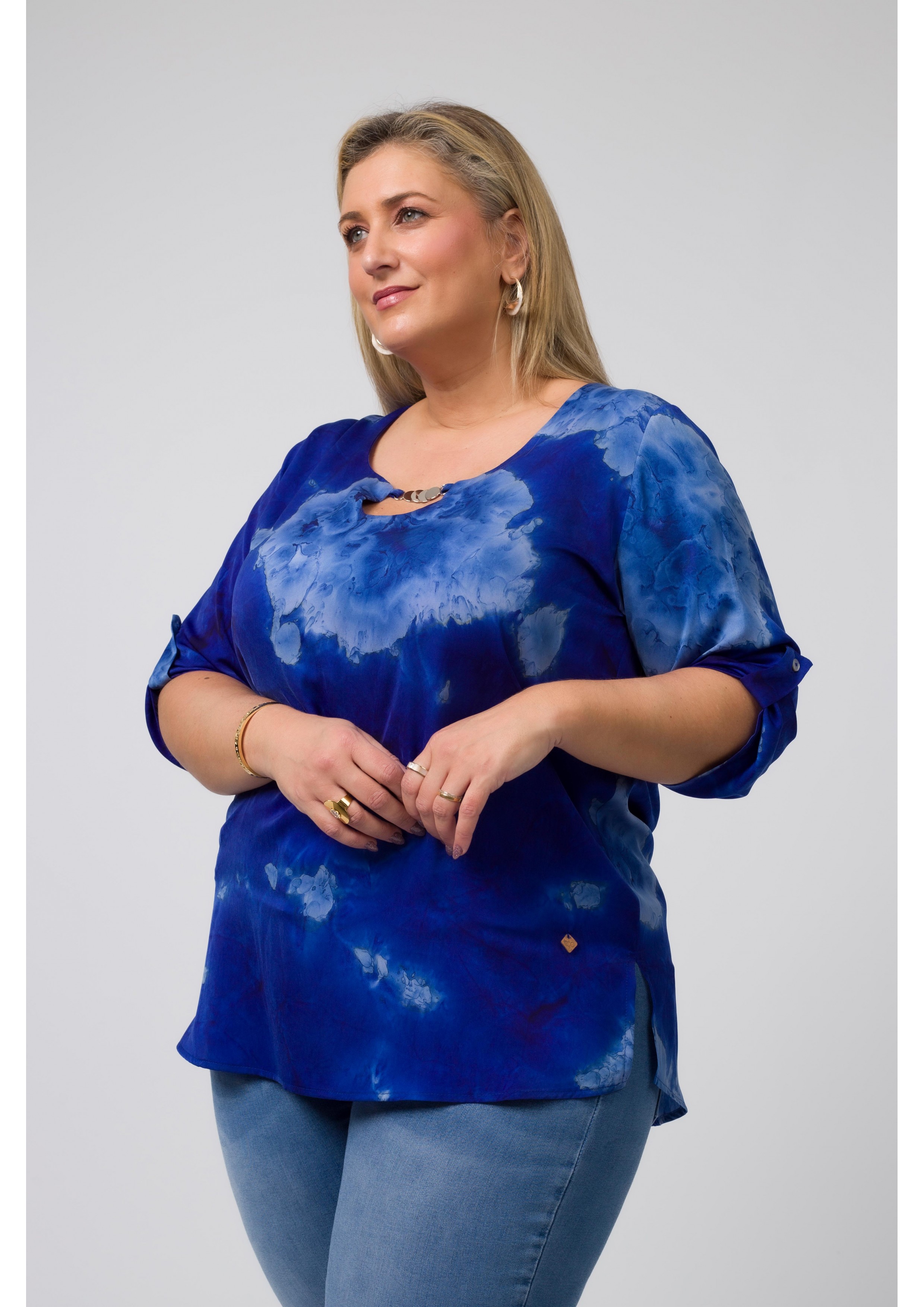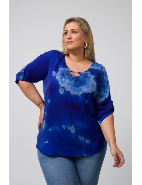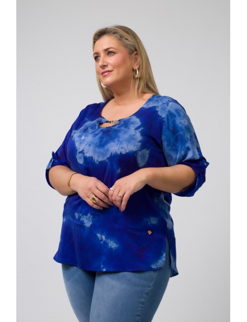 Printed fabric tunic with a round neckline with embellishment. Collection: Spring Summer Available in Plus Sizes Own design and production. We are a clothing manufacturing brand with over 50 years of experience Model: Height 1.65m and wearing size 3XL. Composition: 100% Polyester