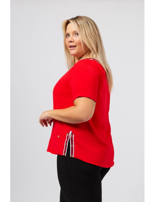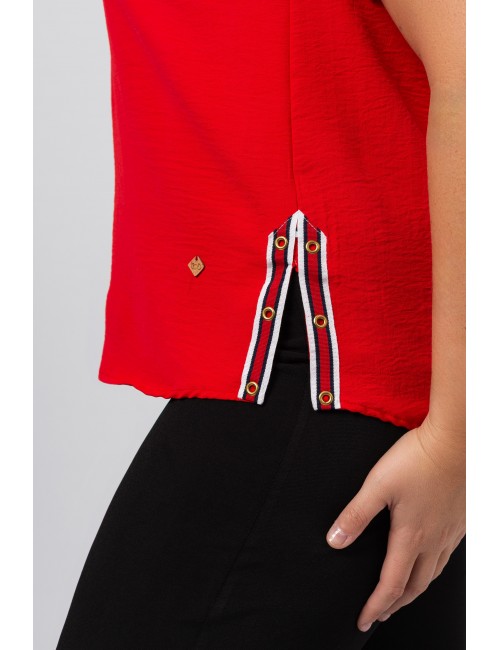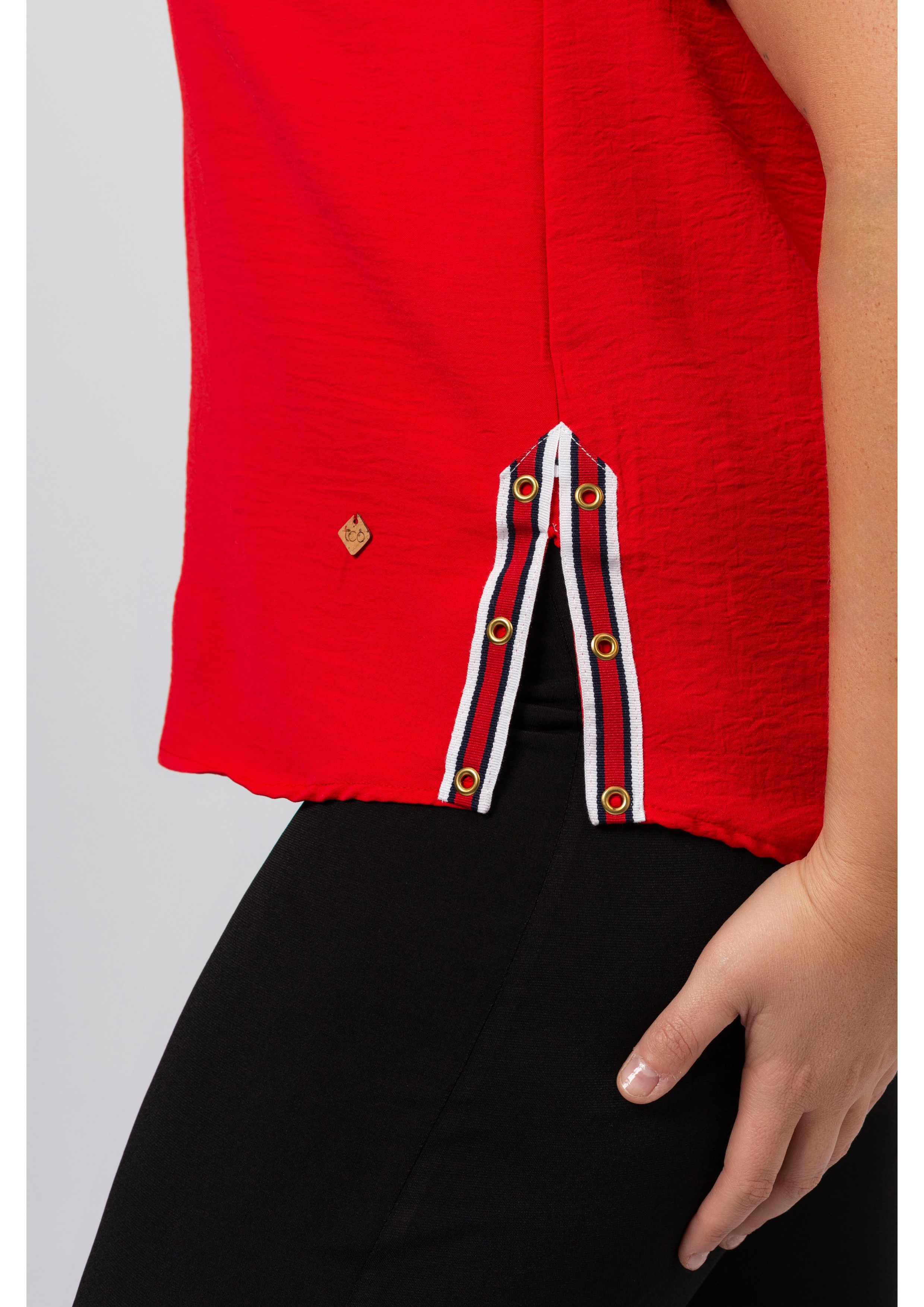 Tunic in plain fabric, V-neck, ribbon with eyelet at the neckline and slits. Rolled batwing sleeves. Side slits. Collection: Spring Summer Model: Height 1.70m and is wearing size 2XL.