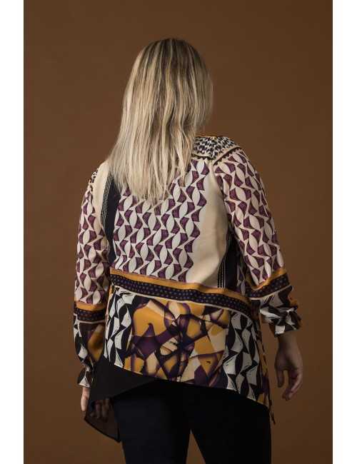 Printed fabric tunic, side points, smooth lining. Long sleeves with elastic, round neckline. Collection: Autumn Winter Model: Height 1.70m and wearing size 2XL.