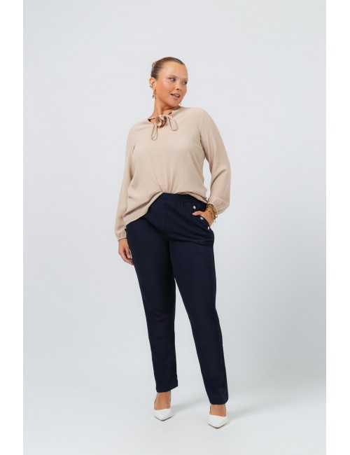 Tunic in plain fabric, round neckline with a blush. Tear drop in the front. Collection: Autumn Winter Model: Height 1.70m and wearing size 2XL, in beige, black, royal blue, gray, green and pearl. Model: Height 1.65m and wearing size 3XL, in burgundy.