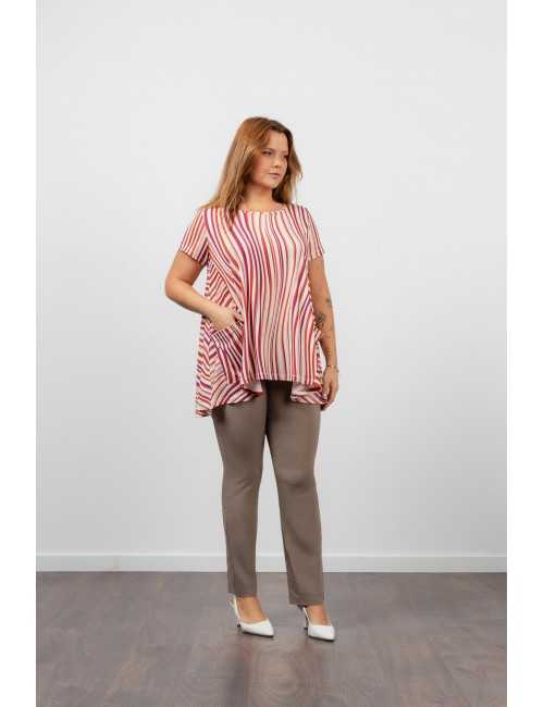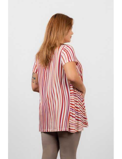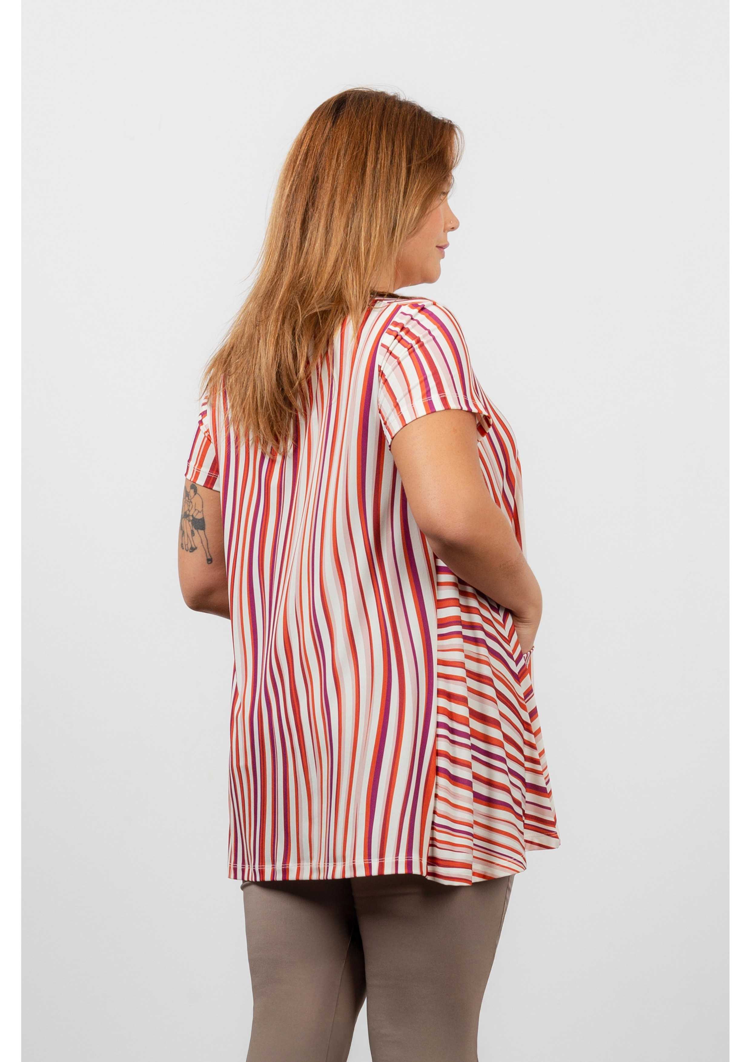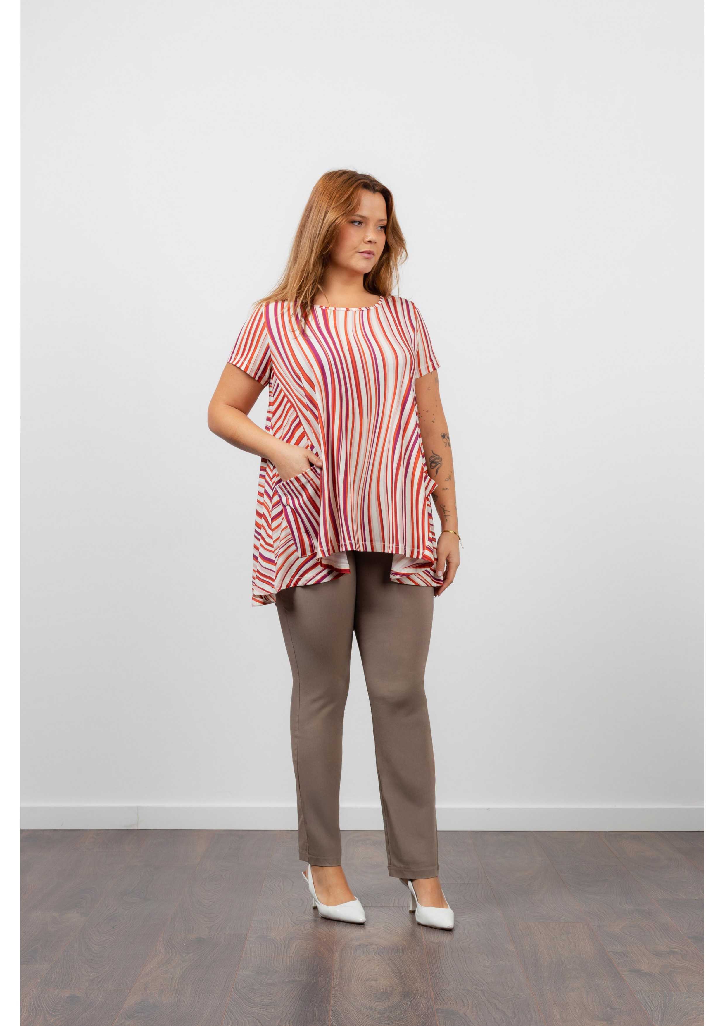 Printed knit tunic, short sleeves, round neckline, patch pockets on the sides. A-line model. Collection: Spring Summer Available in Plus Sizes Own design and manufacturing product. We are a clothing manufacturing brand with over 50 years of experience Model: Height 1.70m and is wearing size 2XL. Composition: 96% Polyester 4% Elastane