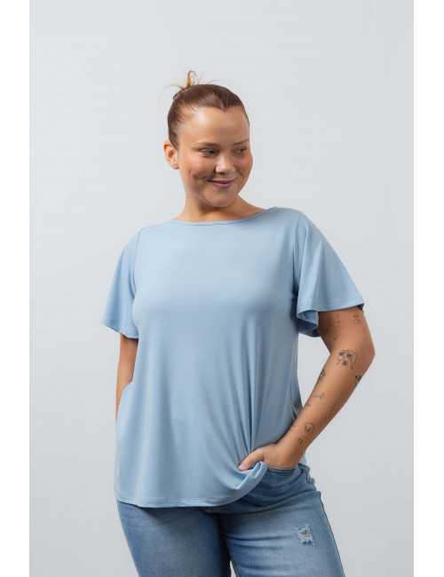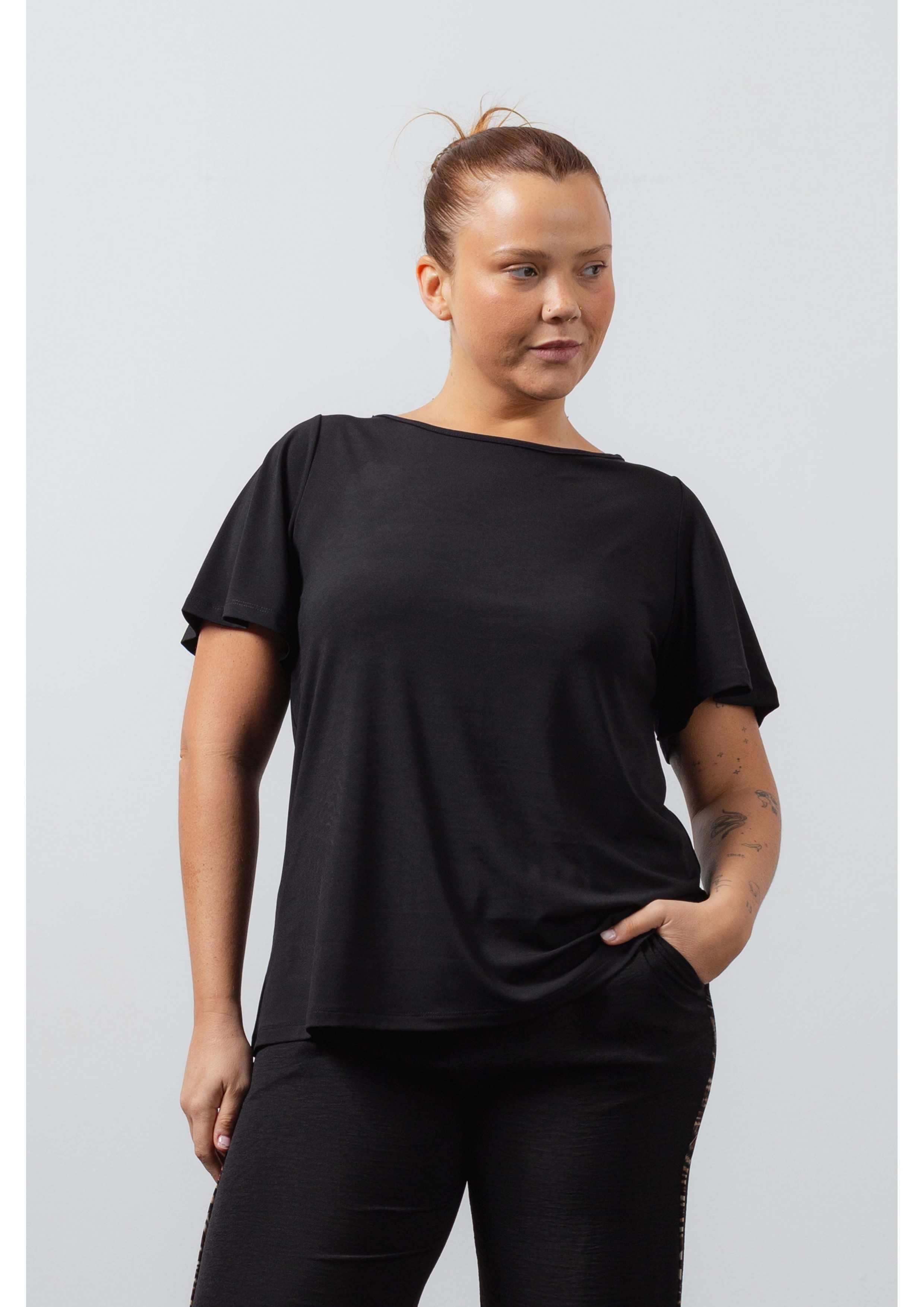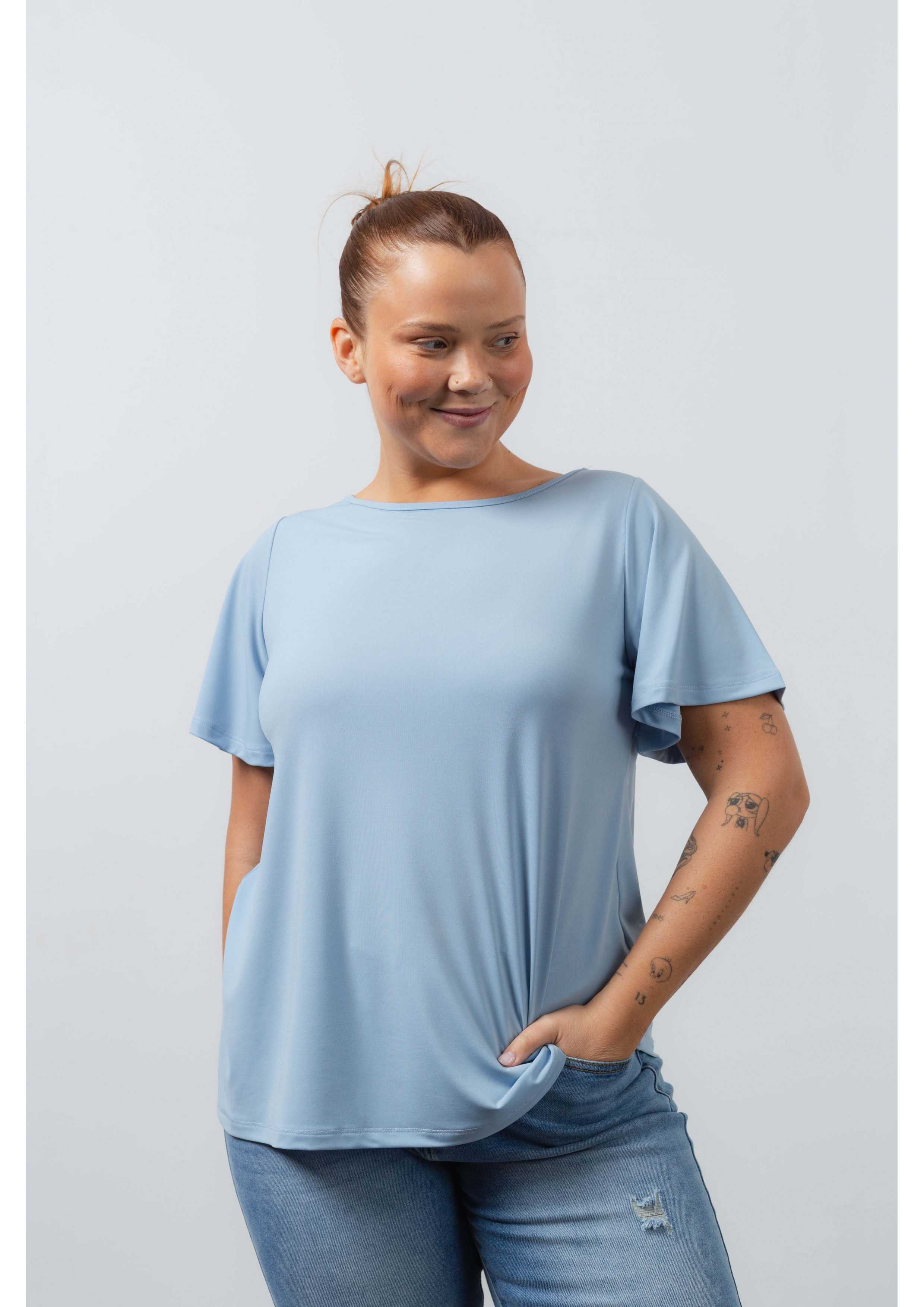 Solid knit tunic, short bell sleeves, round neckline, tear drop at the back. Slightly flared model. Collection: Spring Summer Available in Plus Sizes Custom design and manufacturing. We are a clothing brand with over 50 years of experience Model: Height 1.70m and wearing size XL. Composition: 94% Polyester 6% Elastane