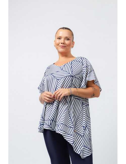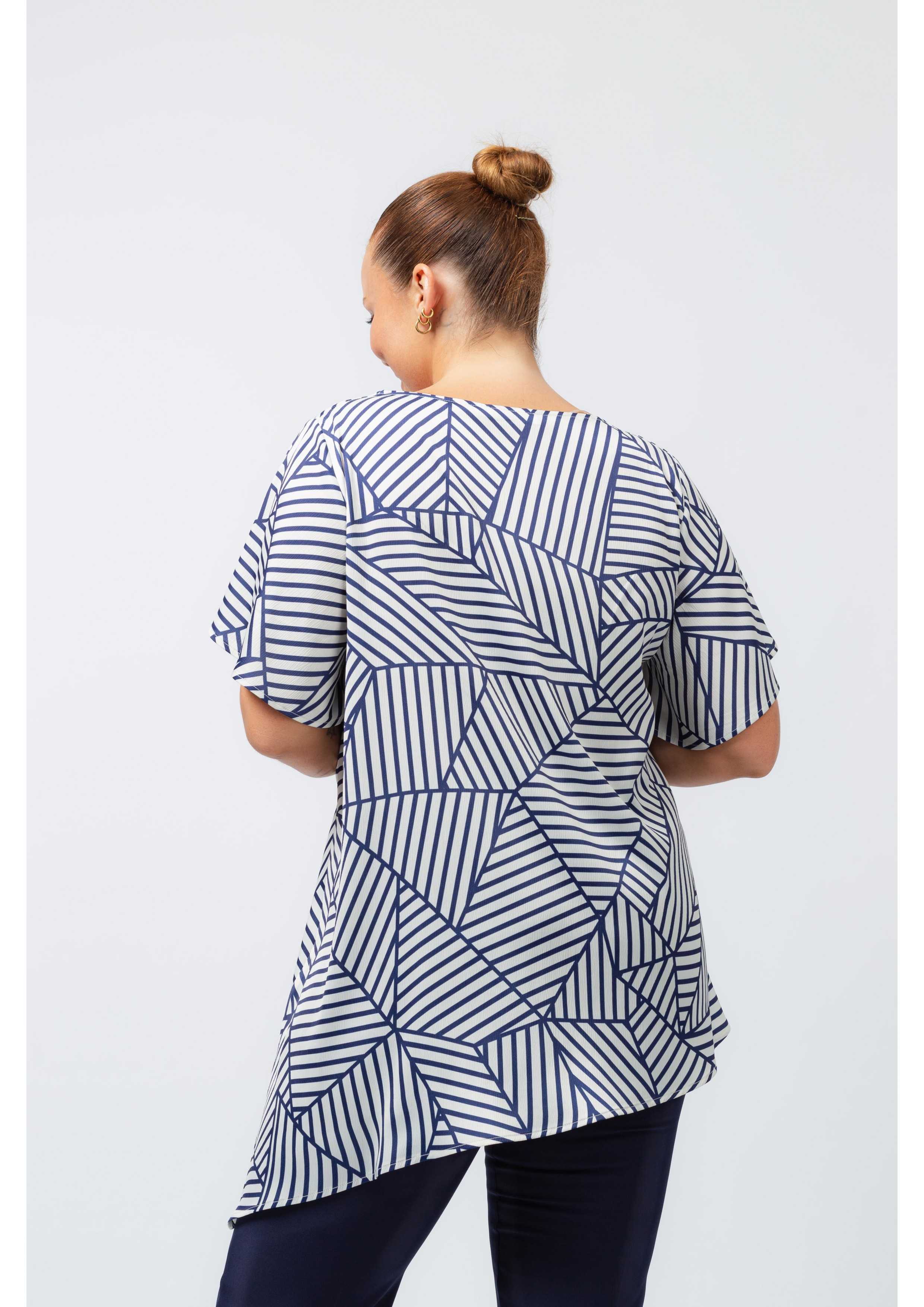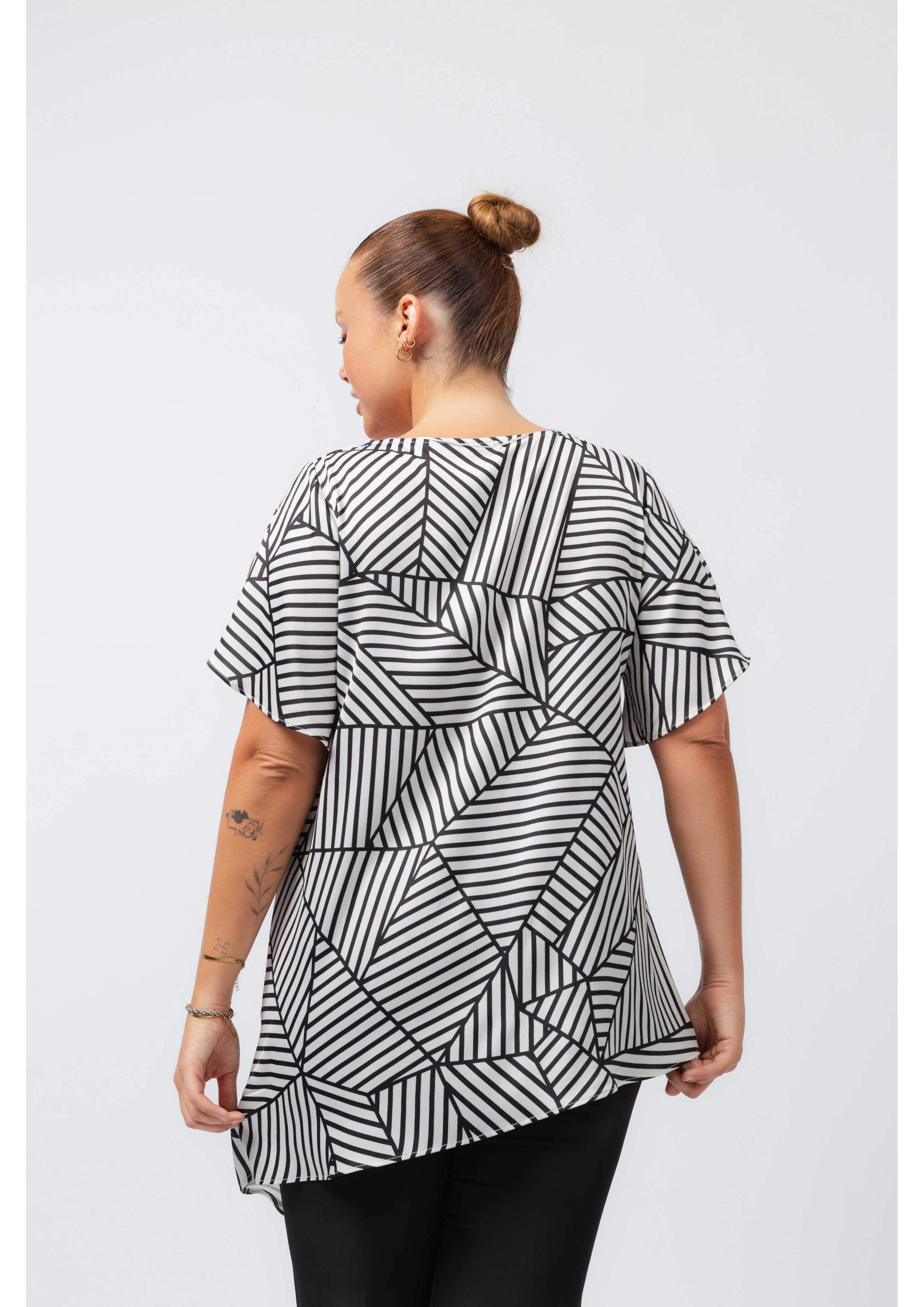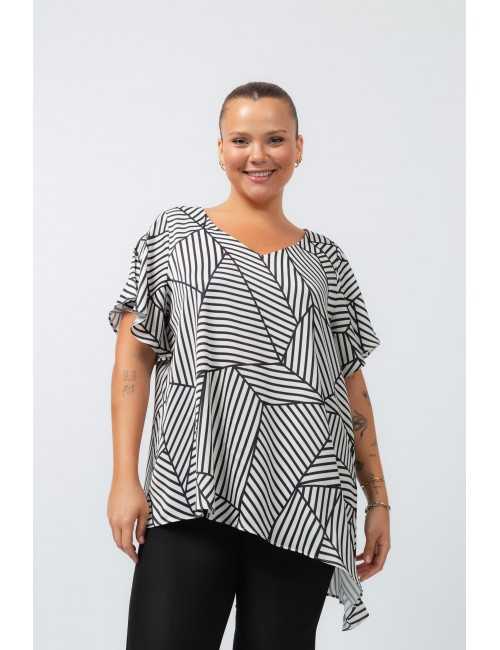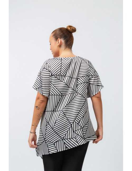 Tunic in printed fabric, V-neck and left side in a point. Short bell-style sleeves. Collection: Spring Summer Model: Height 1.70m and wearing size XL.