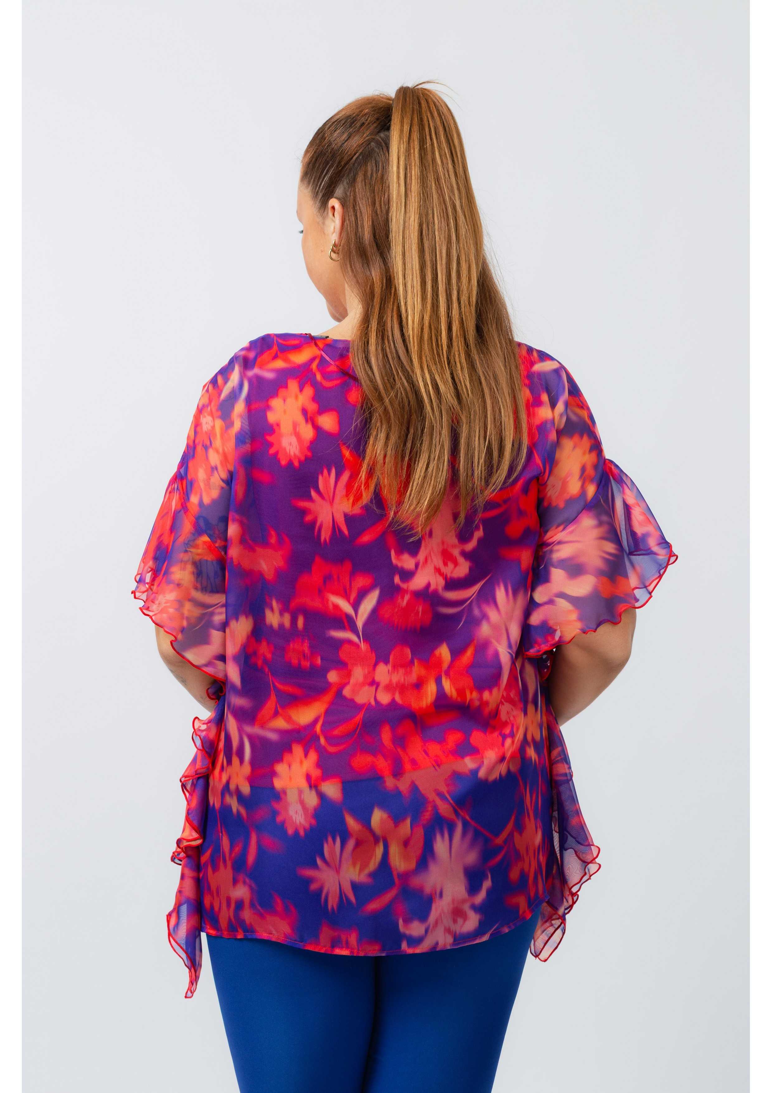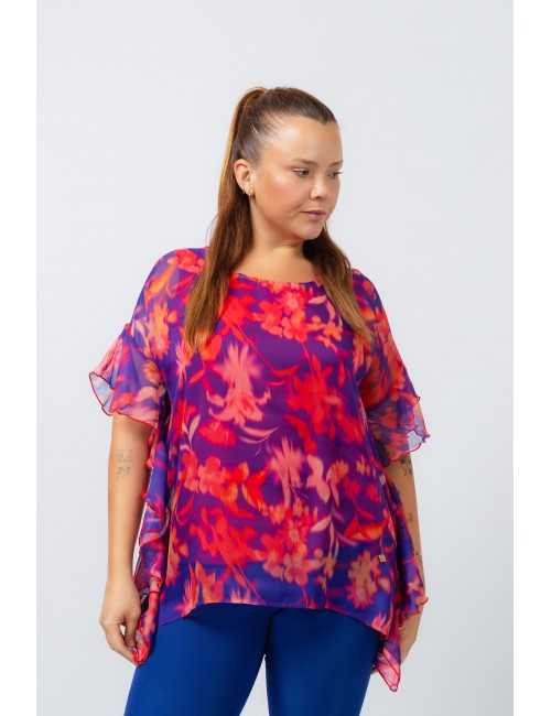Printed fabric tunic, fine, lined piece, ruffles on the sides with rolled finish, round neckline. Collection: Spring Summer Available in Plus Sizes Custom design and manufacturing product. We are a clothing brand with over 50 years of experience Model: Height 1.70m and wearing size XL. Composition: 96% Polyester 4% Elastane | LINING 94% Polyester 6% Elastane