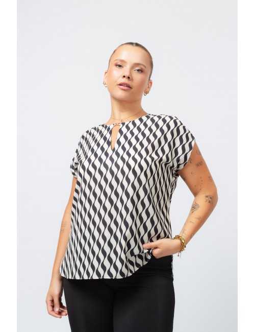 Tunic in plain fabric, wide dropped shoulders. Round neckline with a teardrop and metallic detail. Rounded base. Collection: Spring Summer Available in Plus Sizes Own design and manufacturing product. We are a clothing brand with over 50 years of experience Model: Height 1.70m and is wearing size L. Composition: 98% Polyester 2% Elastane