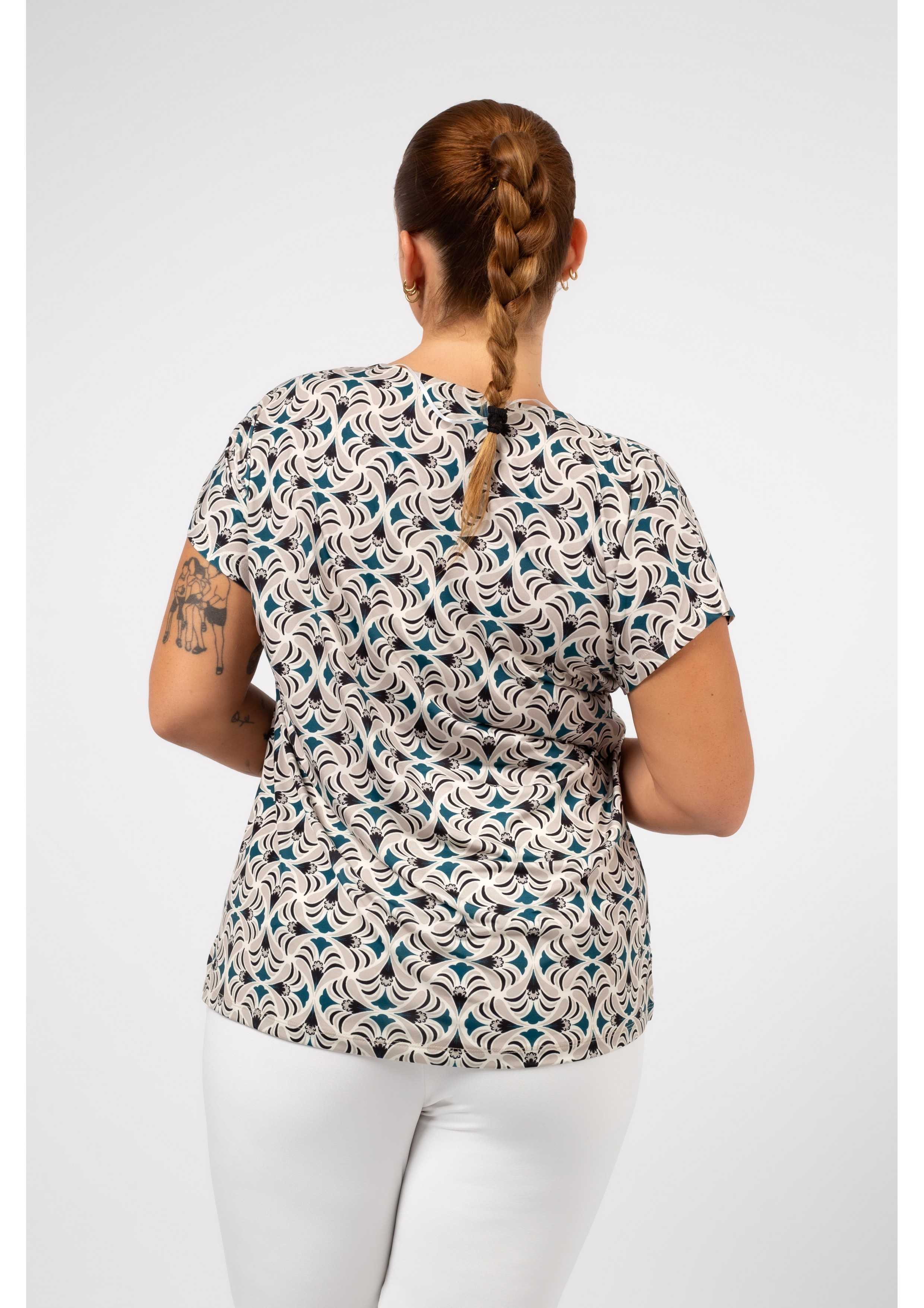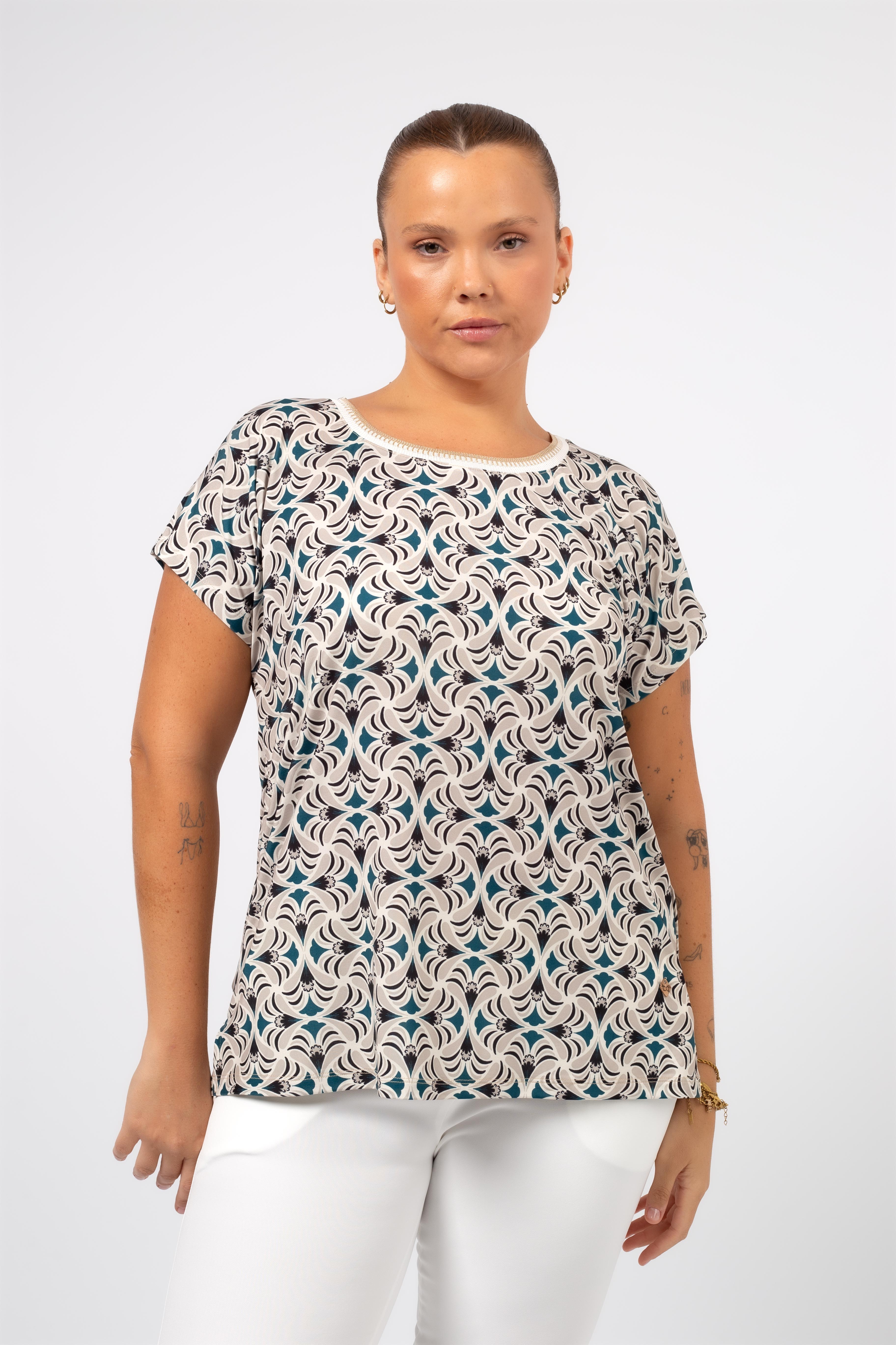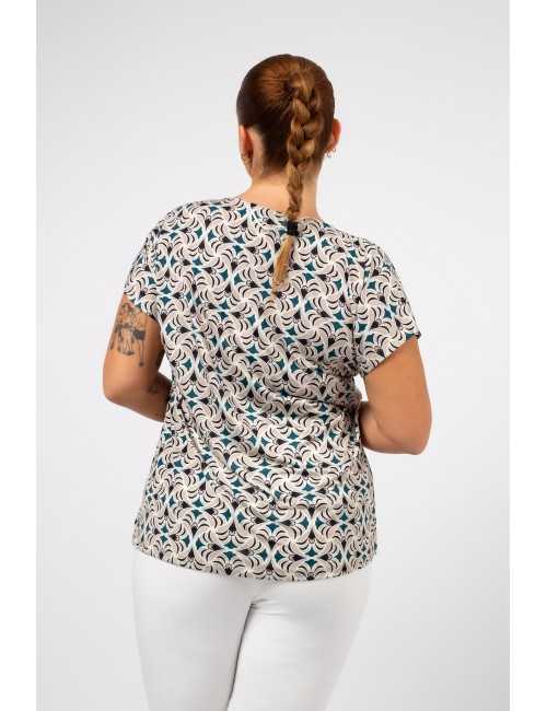 Printed knit tunic, round neck with ribbing in the front. Side slits. Collection: Spring Summer Available in Plus Sizes Designed and manufactured by us. We are a clothing manufacturing brand with over 50 years of experience Model: Height 1.70m and wearing size XL. Composition: 94% Polyester 6% Elastane