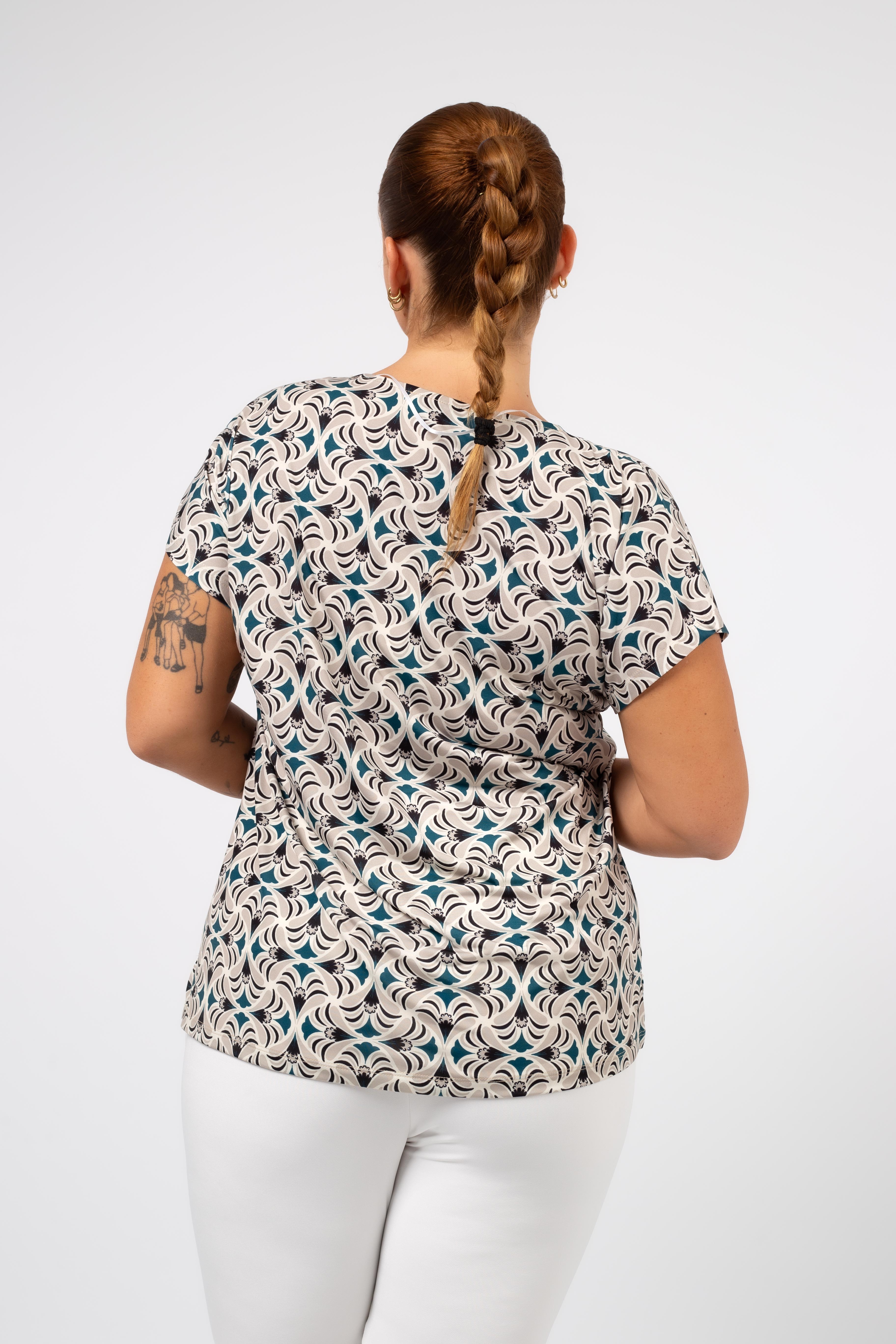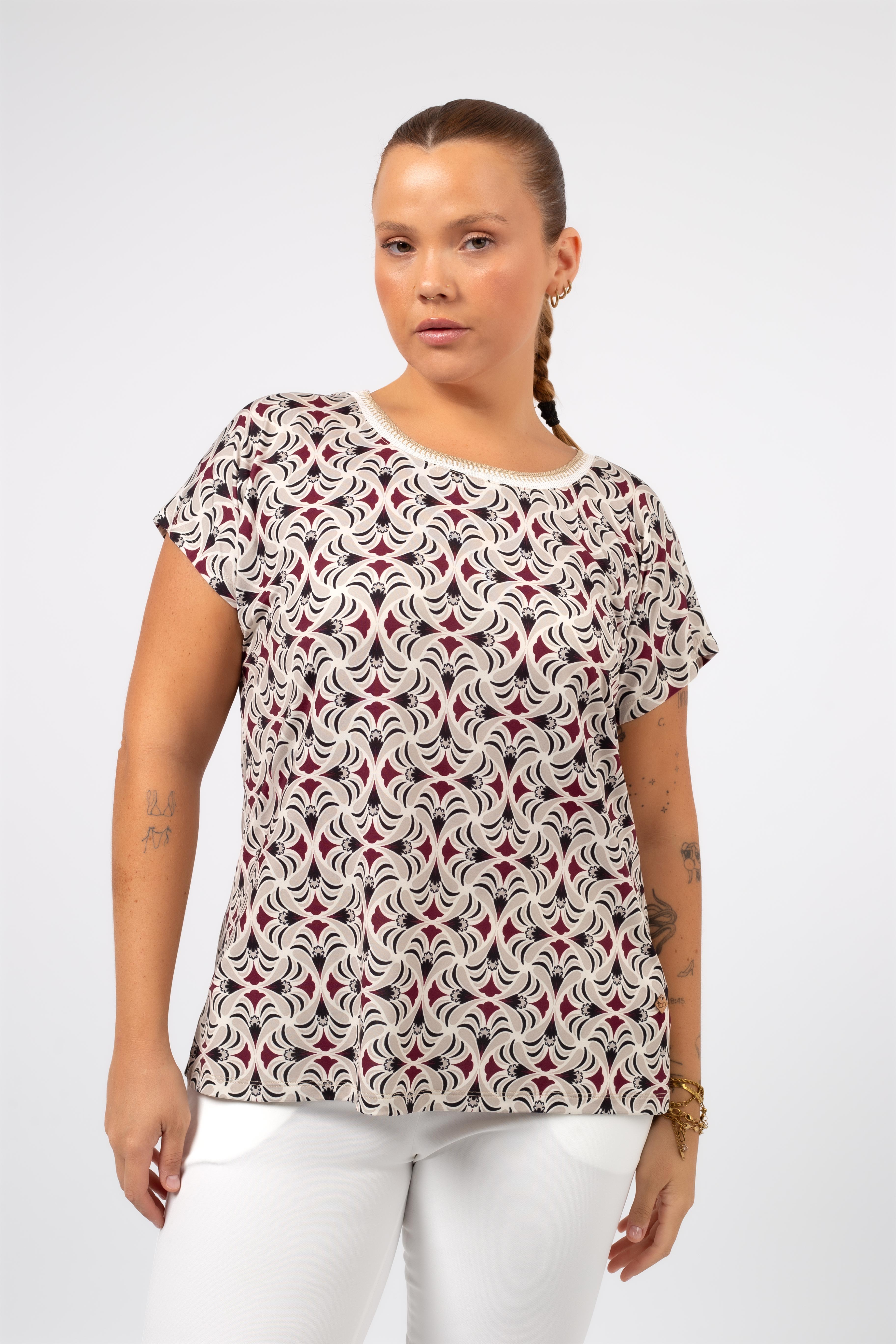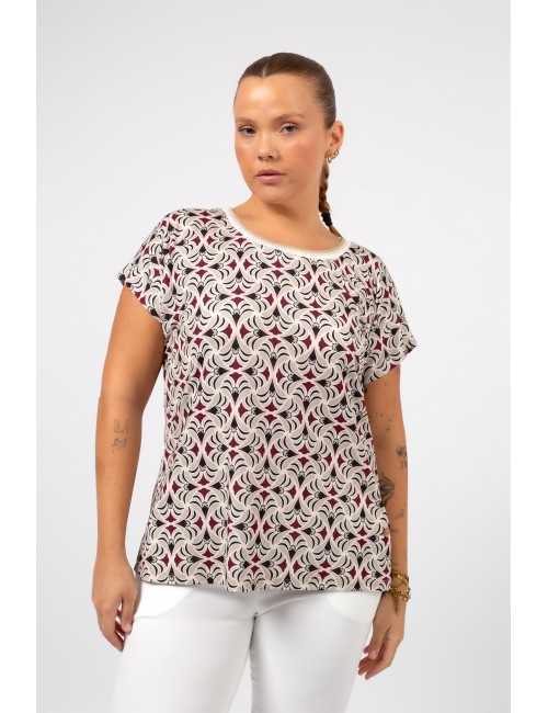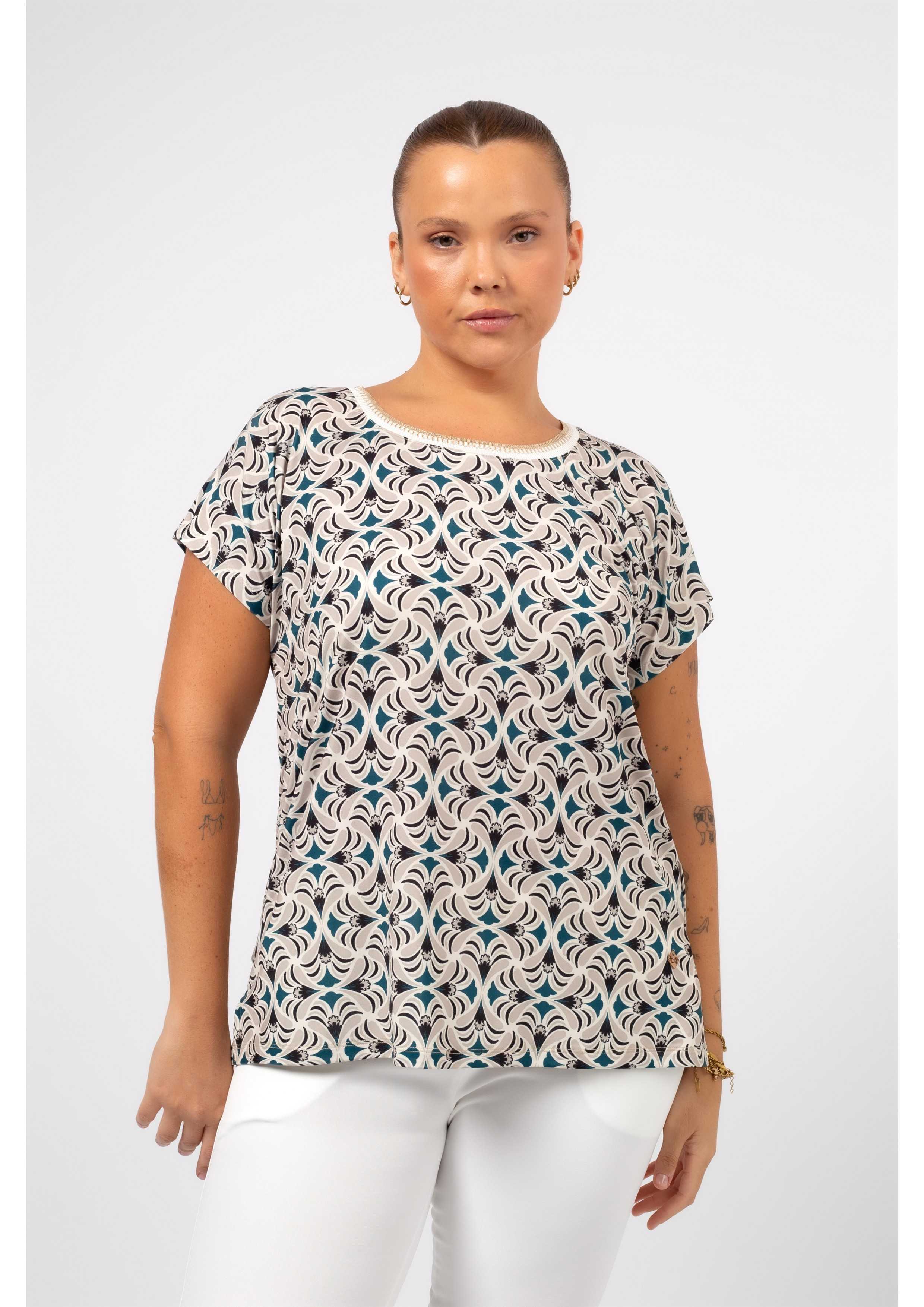 Printed knit tunic, round neck with ribbing in the front. Side slits. Collection: Spring Summer Available in Plus Sizes Designed and manufactured by us. We are a clothing manufacturing brand with over 50 years of experience Model: Height 1.70m and wearing size XL. Composition: 94% Polyester 6% Elastane