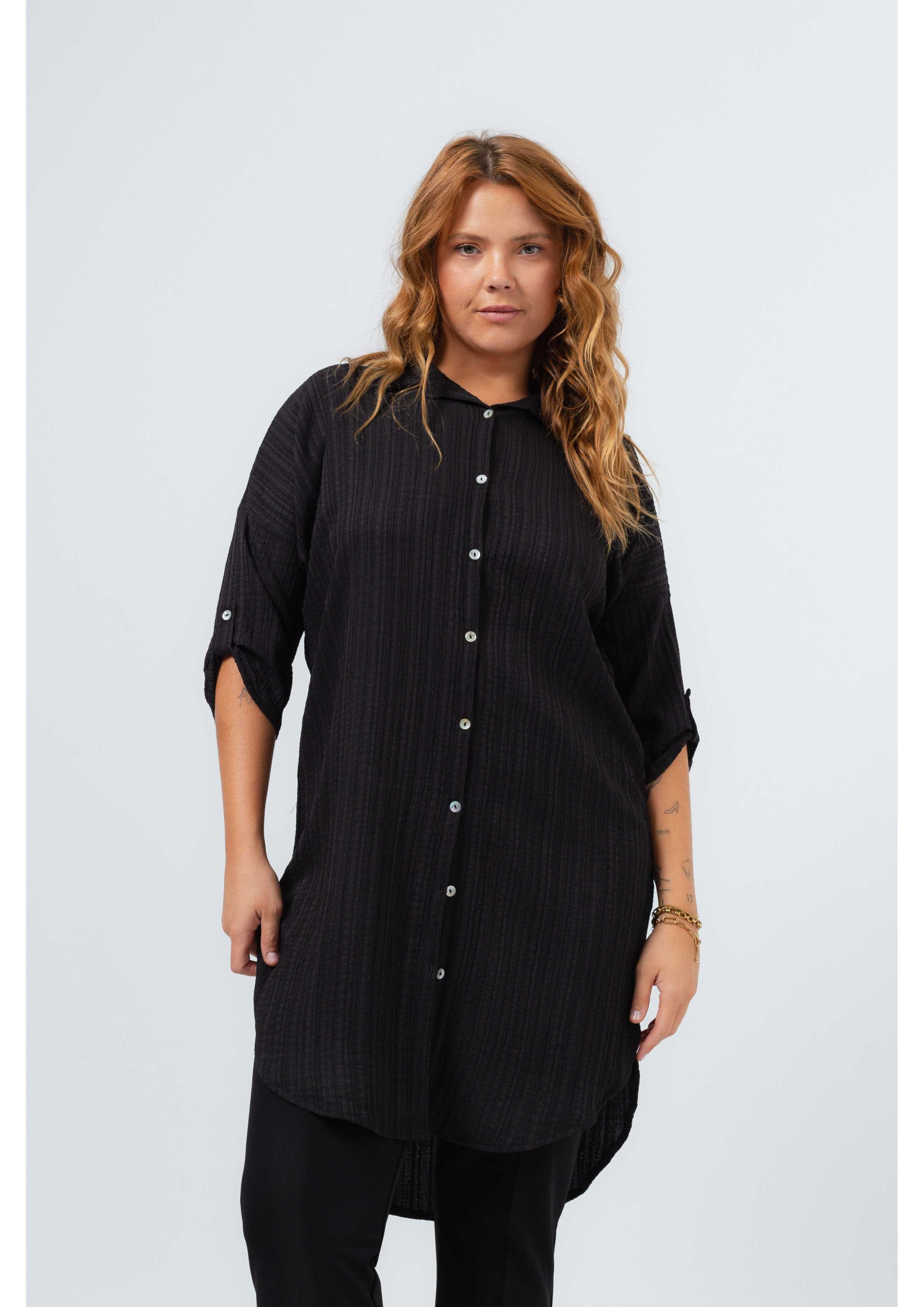 Tunic in fabric with buttons. Collection: Autumn Winter Available in Plus Sizes Own design and manufacturing product. We are a clothing manufacturing brand with over 50 years of experience Model: Height 1.65m and is wearing size 3XL. Composition: 99% Polyester 1% Elastane