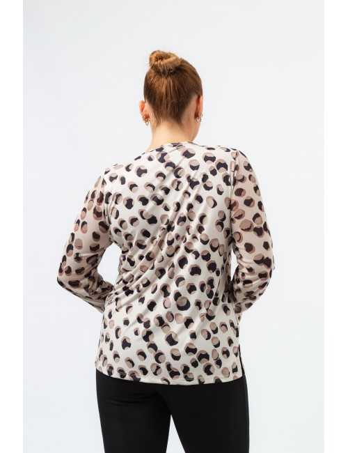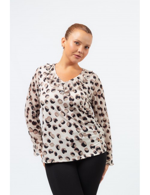 Printed knit tunic with ruffle at the neckline and sleeve. Collection: Autumn Winter Available in Plus Sizes Custom design and production. We are a clothing manufacturing brand with over 50 years of experience Model: Height 1.70m and is wearing size XL. Composition: 100% Polyester | 95% Polyester 5% Elastane