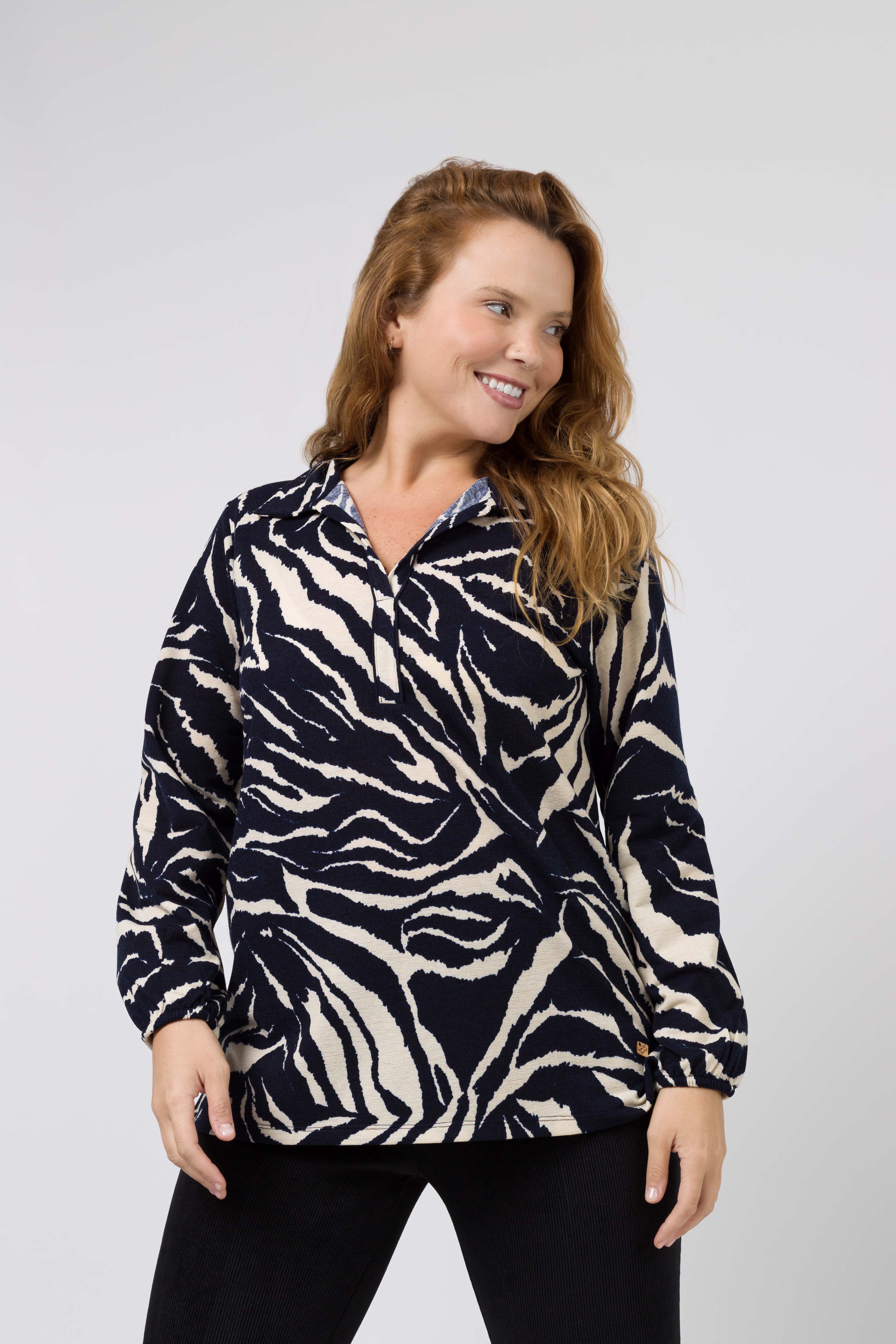 251152 - Polo em malha estampada marinho Coleção Outono Inverno Tamanhos Grandes
