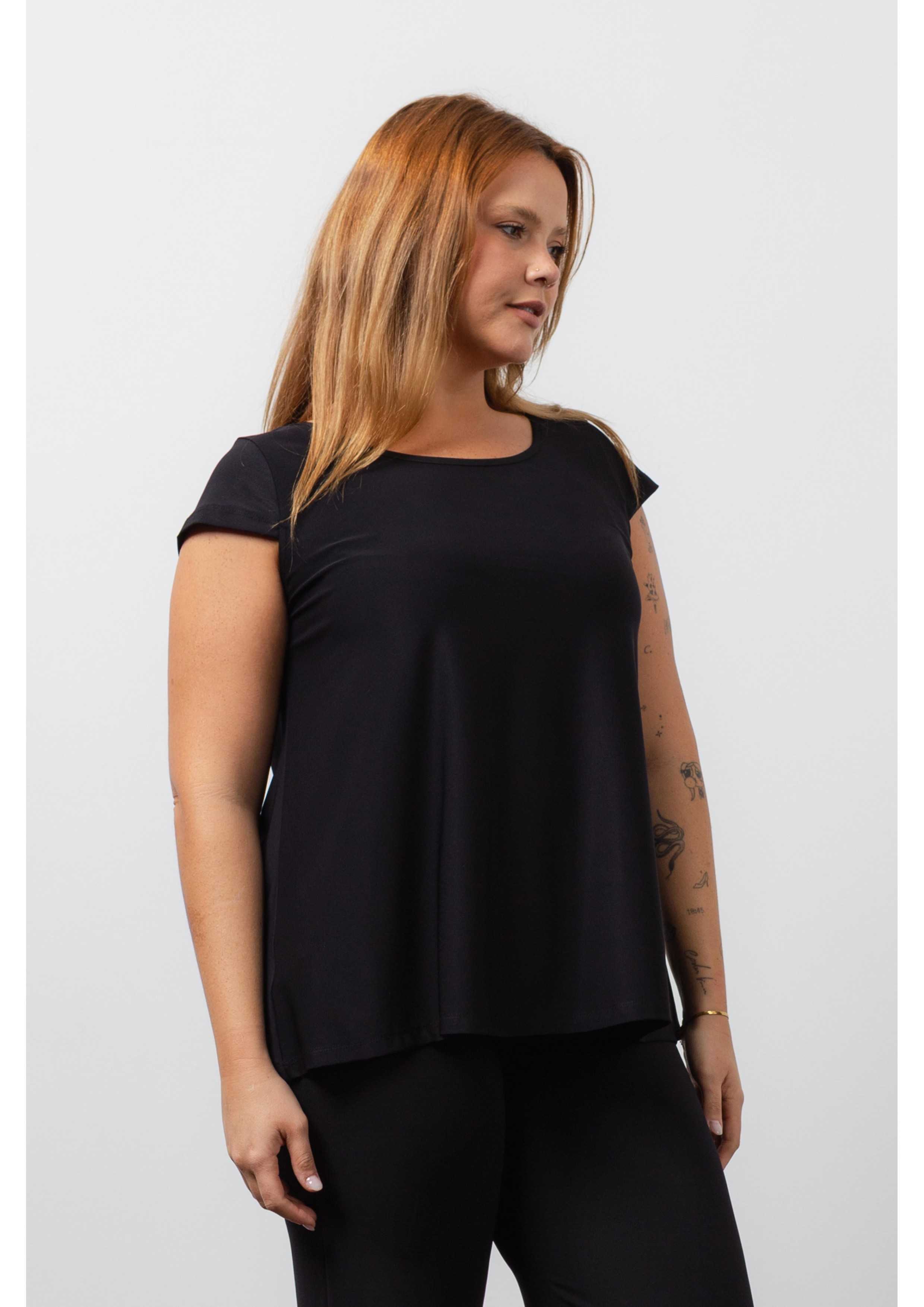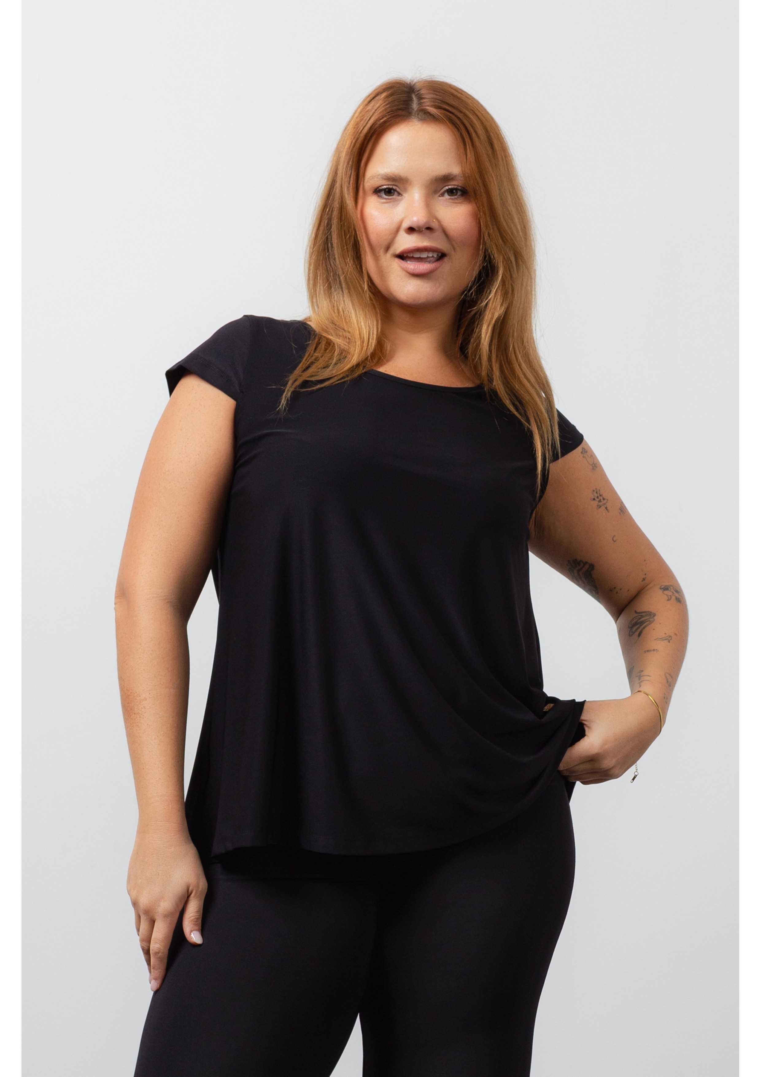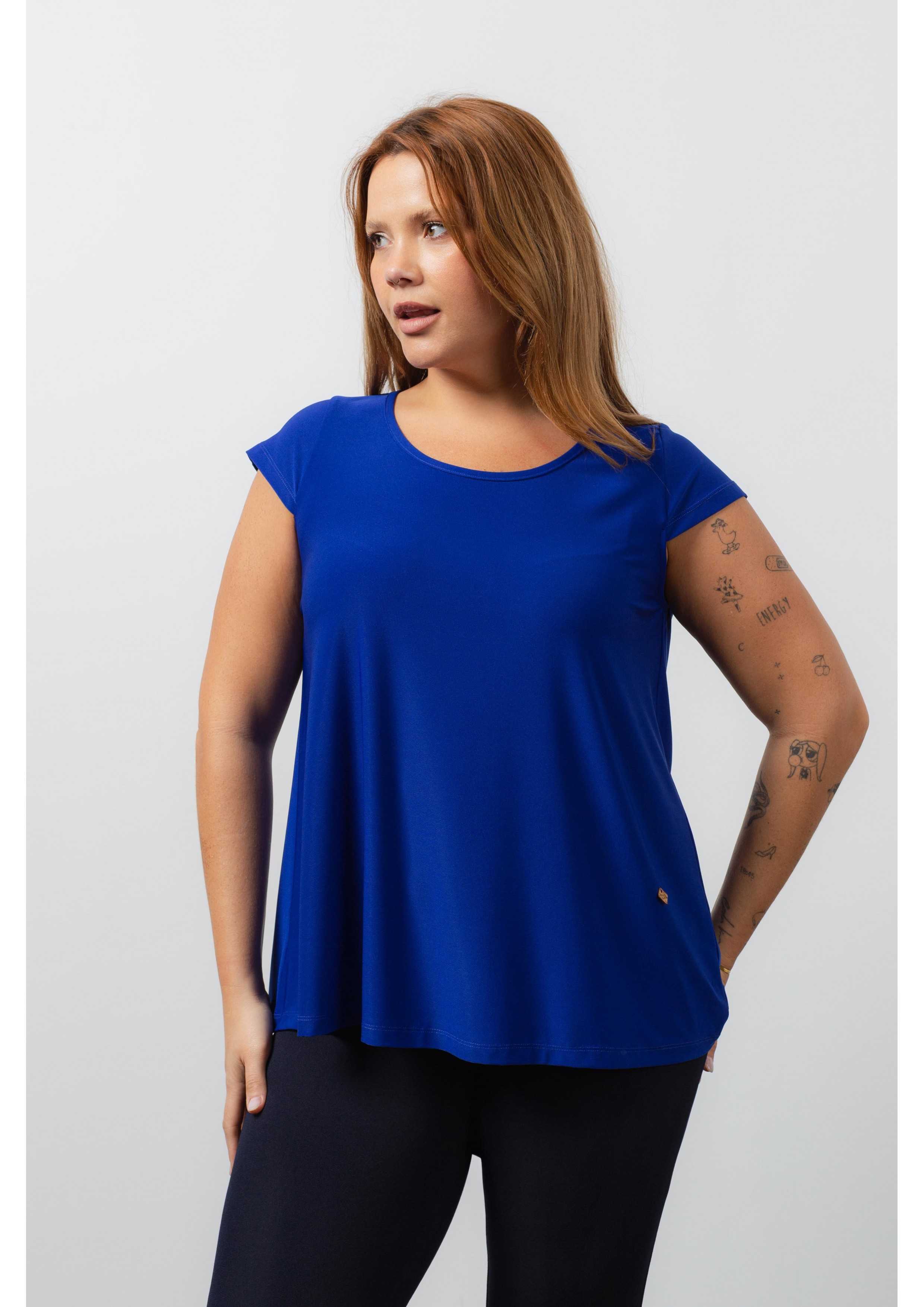 Camiseta de malla lisa, cuello redondo con escote, manga de copa | Colección: Primavera Verano | Modelo: Altura 1,70m y está vistiendo la talla 2XL