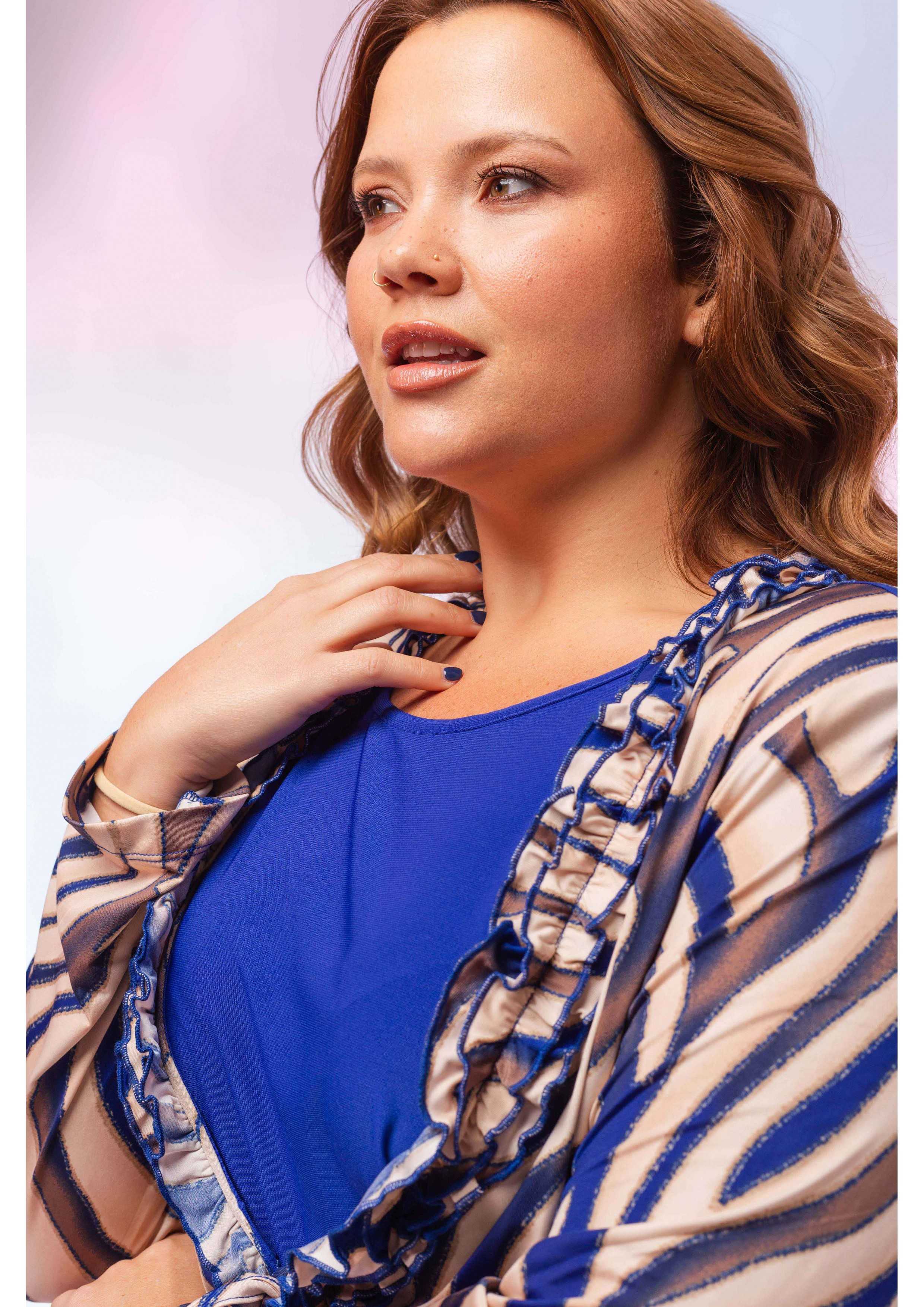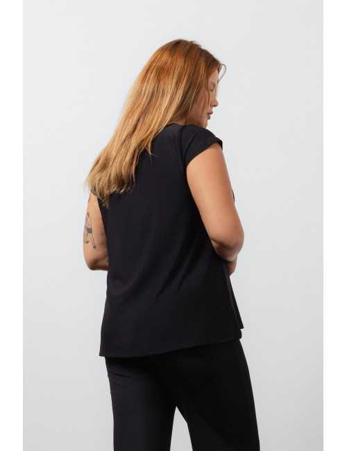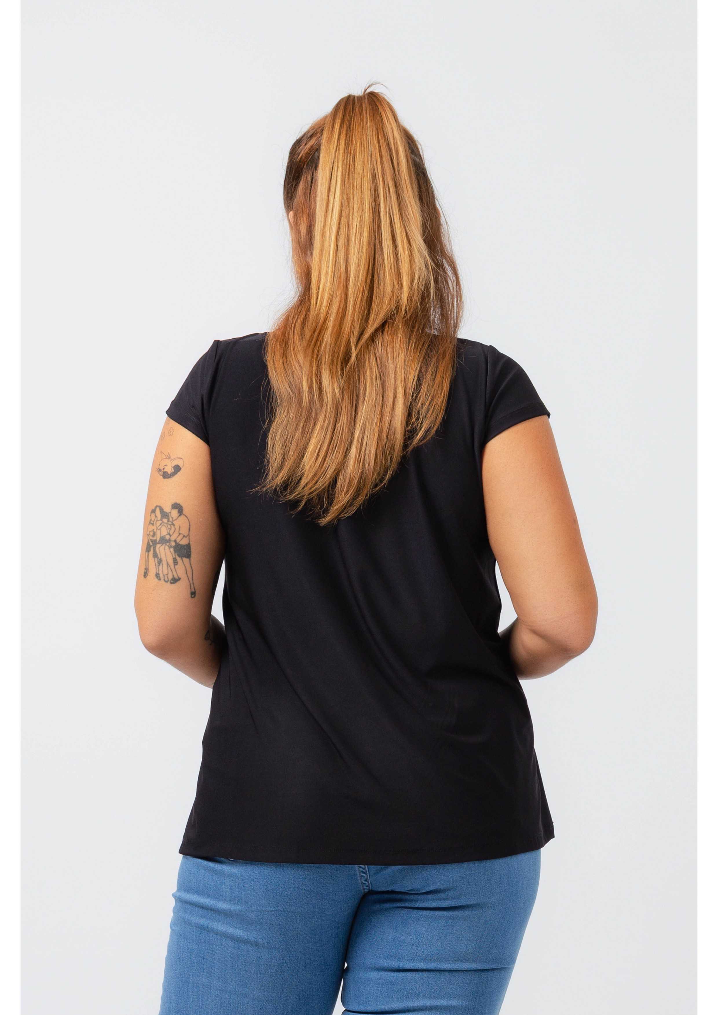 Camiseta de malla lisa, cuello redondo con escote, manga de copa | Colección: Primavera Verano | Modelo: Altura 1,70m y está vistiendo la talla 2XL
