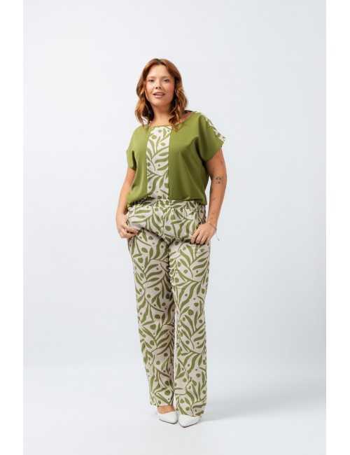 Conjunto en tejido liso y estampado Colección Primavera Verano Tallas Grandes