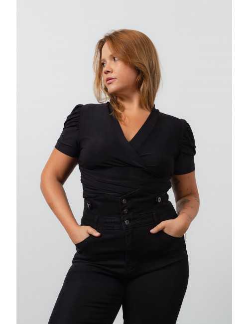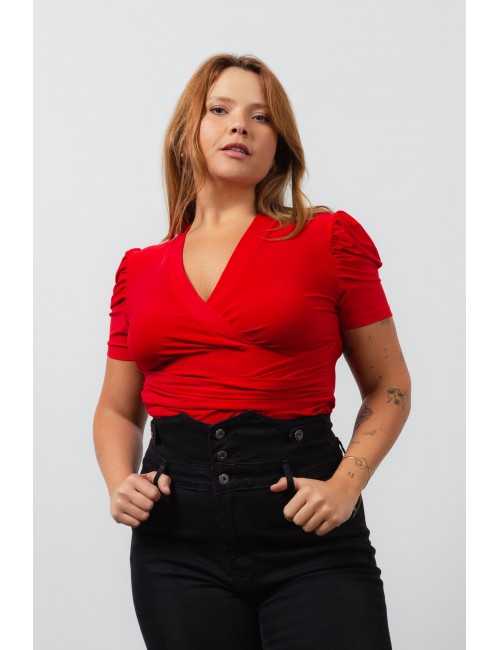 Body de malla lisa, escote en pico con sobrepico. Ajuste fruncido y cruzado en el frente. Manga corta ajustada y toda fruncida. Colección: Primavera Verano Disponible en Tallas Grandes Producto de diseño y fabricación propia. Somos una marca de confección de prendas con más de 50 años de experiencia Modelo: Altura 1.70m y está vistiendo la talla XL. Composición: 94%Poliéster 6%Elastano
