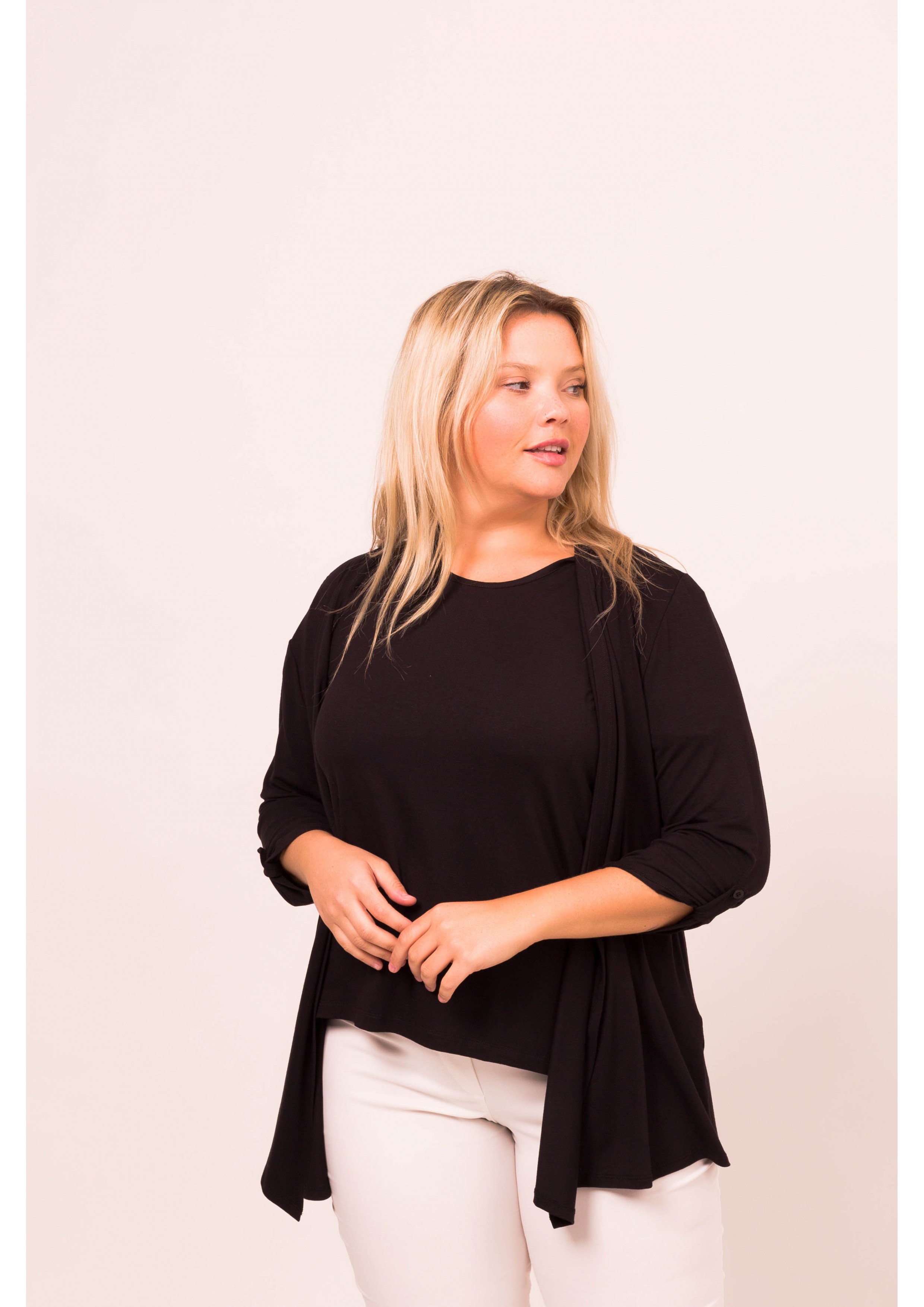 Chaqueta de punto de viscosa, con presillas en las mangas. Escapulario sencillo en la parte de atrás. Colección: Primavera Verano Disponible en Tallas Grandes Producto de diseño y fabricación propio. Somos una marca de confección de ropa con más de 50 años de experiencia. Composición: 90% Viscosa 10% Elastano